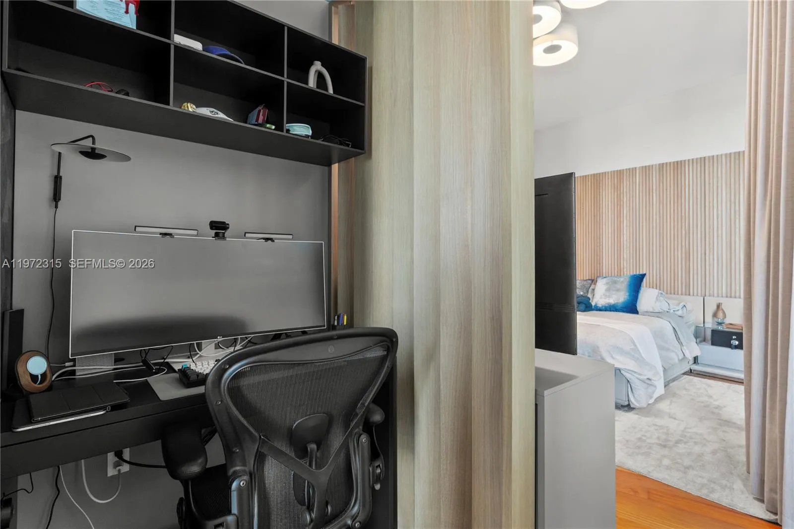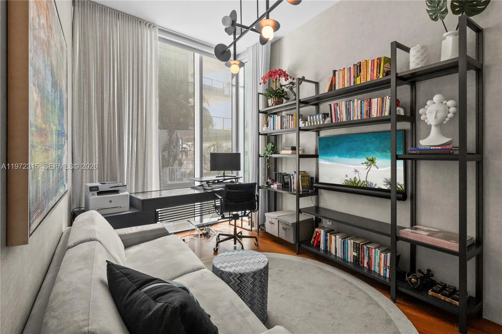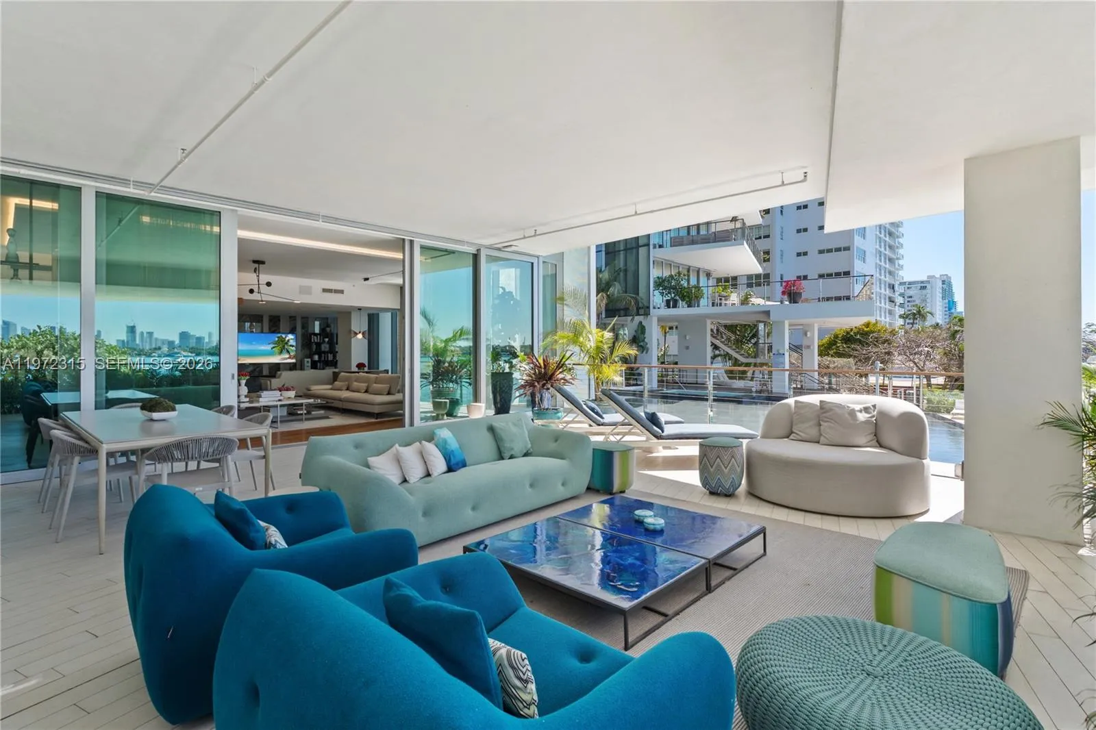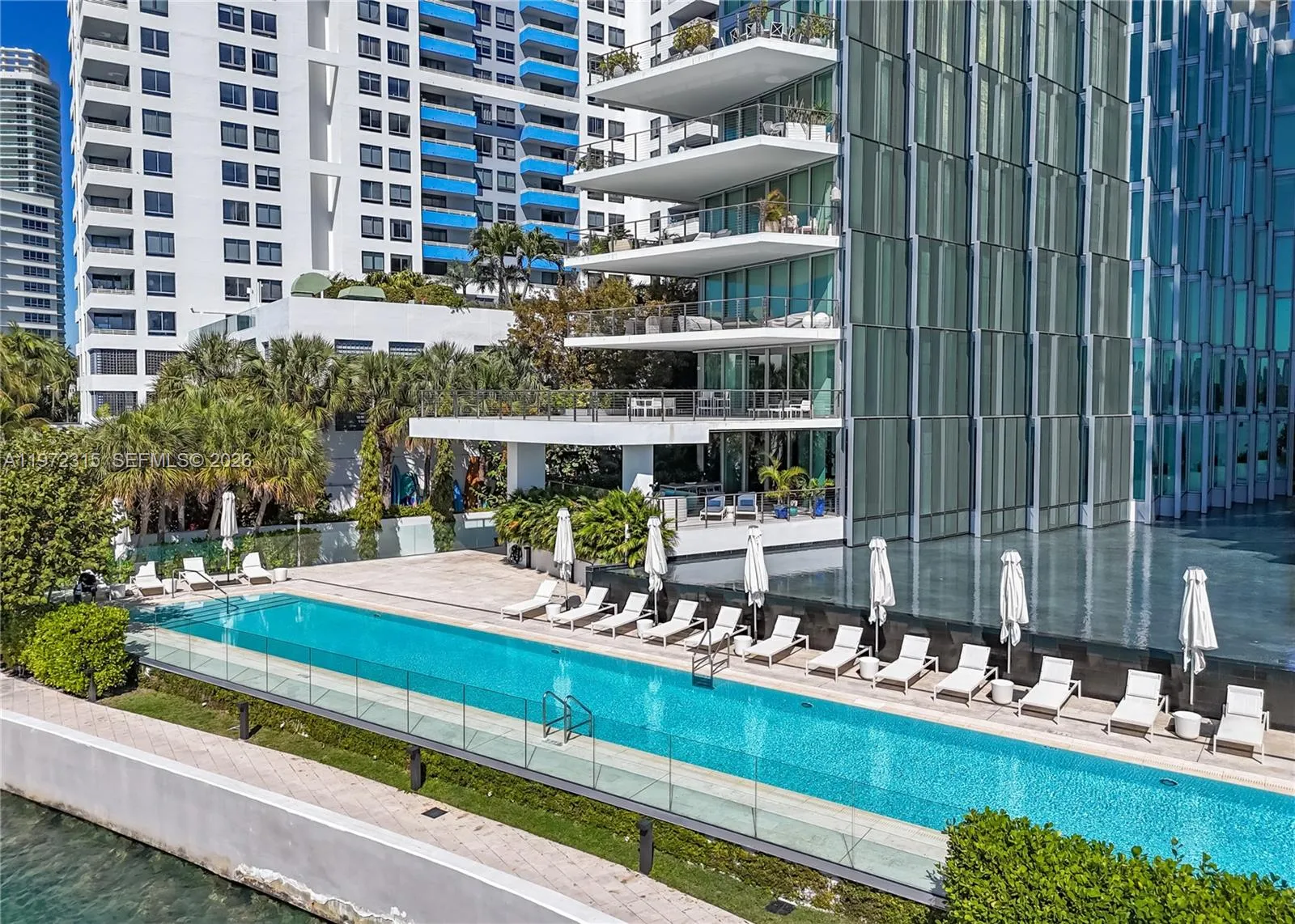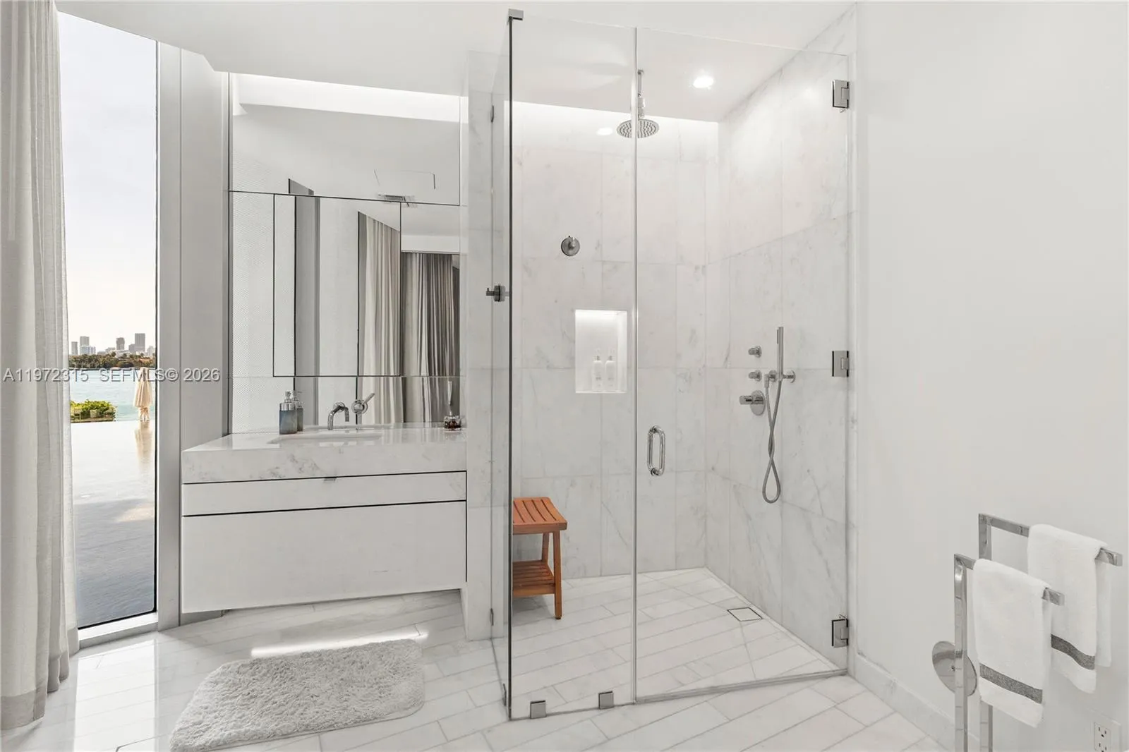 Exceptional waterfront residence overlooking the Bay & the Miami Skyline. This 3Be/3.5Ba condo offers 2,807 SF of interior & an expansive 1,000 SF terrace. The bright open layout and striking architecture creates seamless indoor-outdoor flow while lush vegetation ensures total privacy. The chef’s kitchen features a sculptural Calacatta marble island, custom cabinetry, AV-Savant system, marble statement wall & premium built-ins. The oversized primary includes a large walk-in closet, a spa-style bath w/ veined stone, marquetry flooring, Italkraft custom closets & tiled walls. All additional bedrooms are ensuite. Teak flooring, designer fixtures, 10’5” Ceilings, recessed lighting, custom wallpaper, a bespoke bar, and private elevator access complete the home. Set in a boutique condo near Sunset Harbour and West Avenue, it offers privacy and prime Miami Beach access.