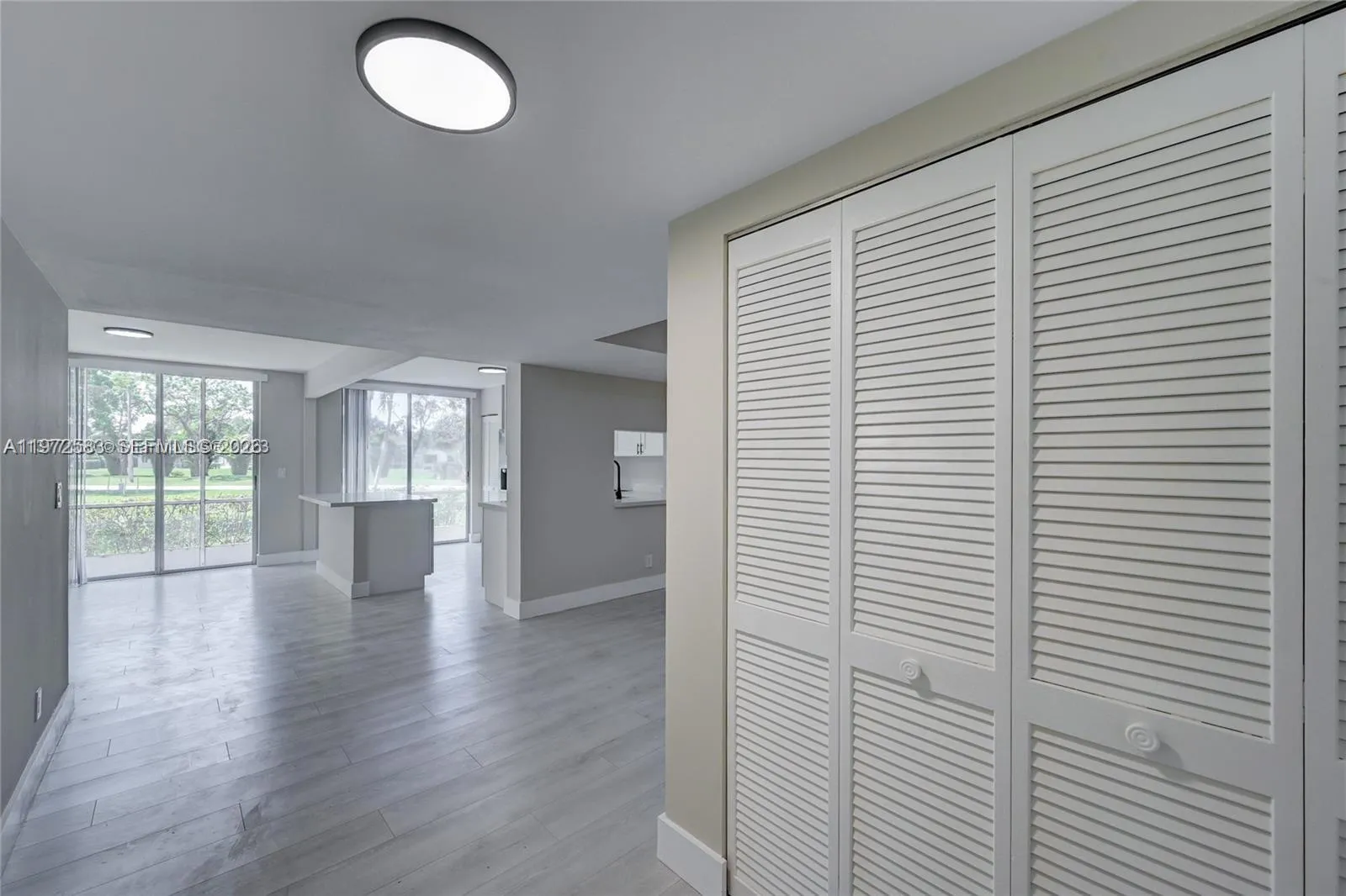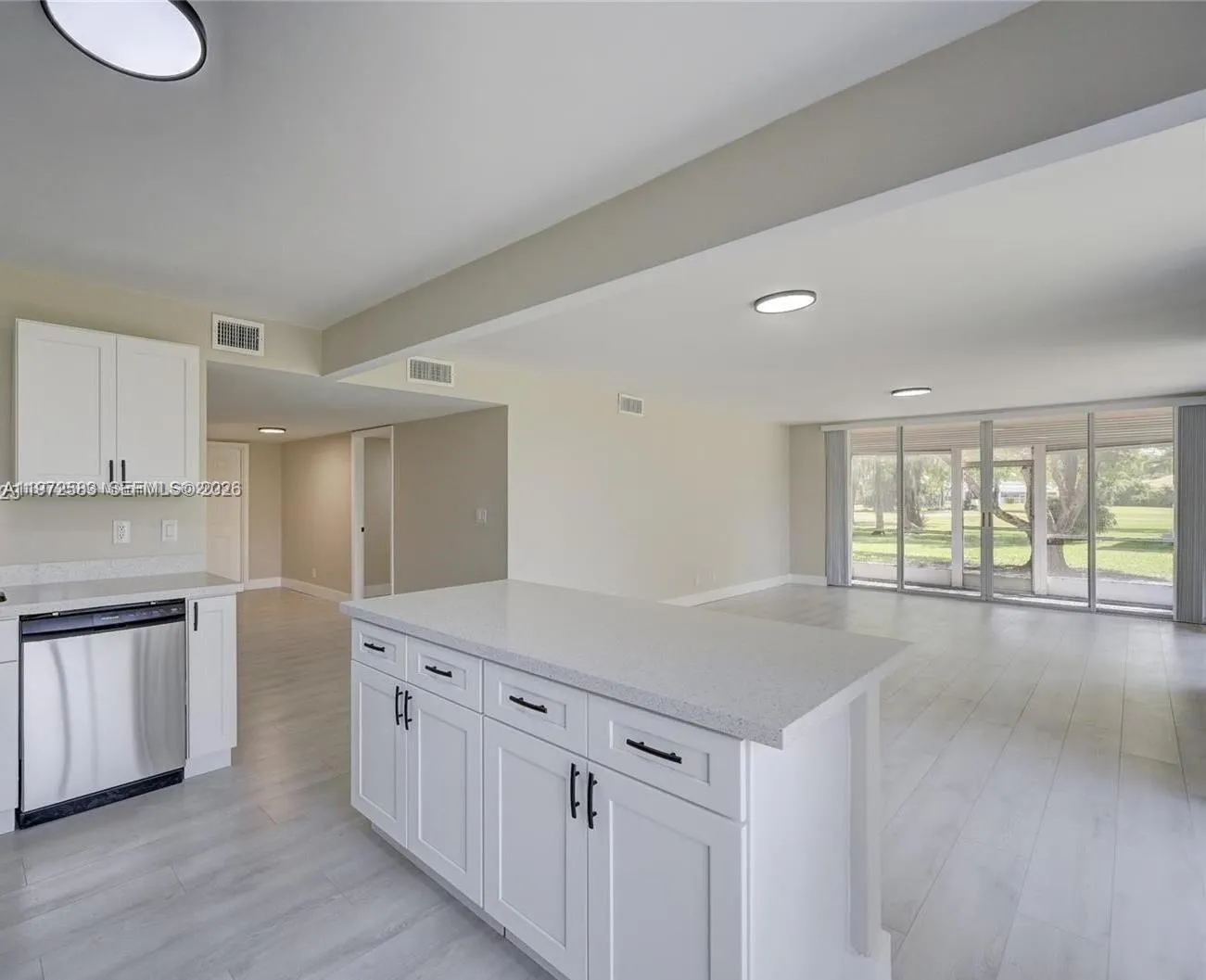 1st Floor – Fully Updated 3BR/2BA Corner Unit with Golf Course ViewrnrnBeautifully updated and spacious first-floor corner condo featuring an open layout filled with natural light and serene golf course views. This move-in-ready unit offers waterproof flooring throughout, modern baseboards, and a fully renovated kitchen with white shaker-style cabinets, new hardware, stainless steel appliances, slide-in range, quartz countertops, center island, and a stunning designer backsplash that adds a luxurious touch. The primary suite includes a walk-in closet, and both bathrooms are upgraded with porcelain tile, quartz vanities, new fixtures, and frameless glass shower in the guest bath. Major upgrades include newer A/C, newer water heater, new washer & dryer, and new bath fixtures. The screened-in patio is expansive and completely redone with anti-slip flooring throughout, providing safety and comfort. All patio screens have been upgraded to Pet Screen for extra durability — resistant to scratching and ideal for pet owners. Roll-down shutters throughout add additional protection and privacy. Additional features include a storage room, dedicated parking space plus ample guest parking. Maintenance includes roof repairs, insurance, water, cable, and more. Centrally located near I-75, Sawgrass, shopping, dining, and entertainment.