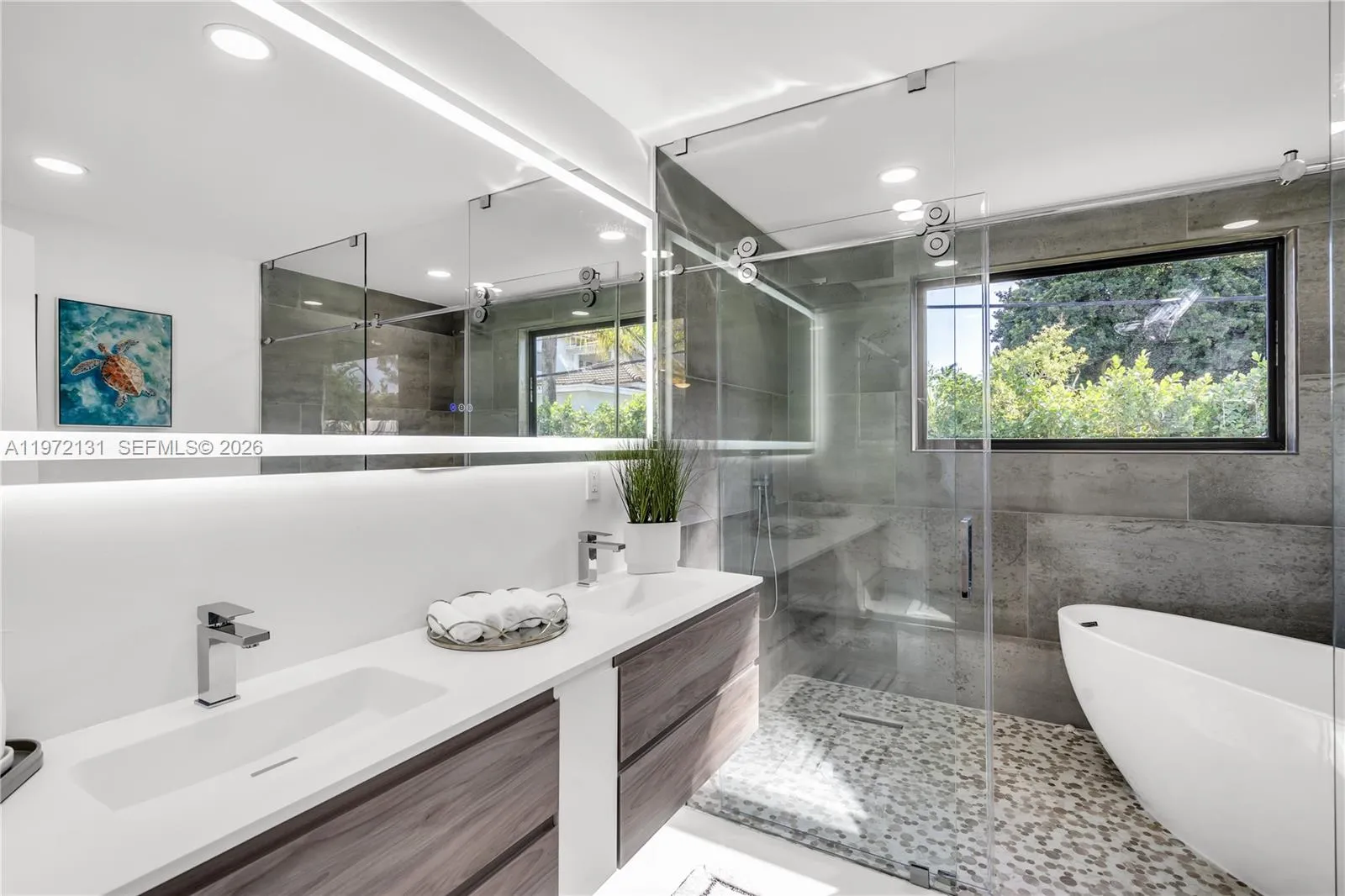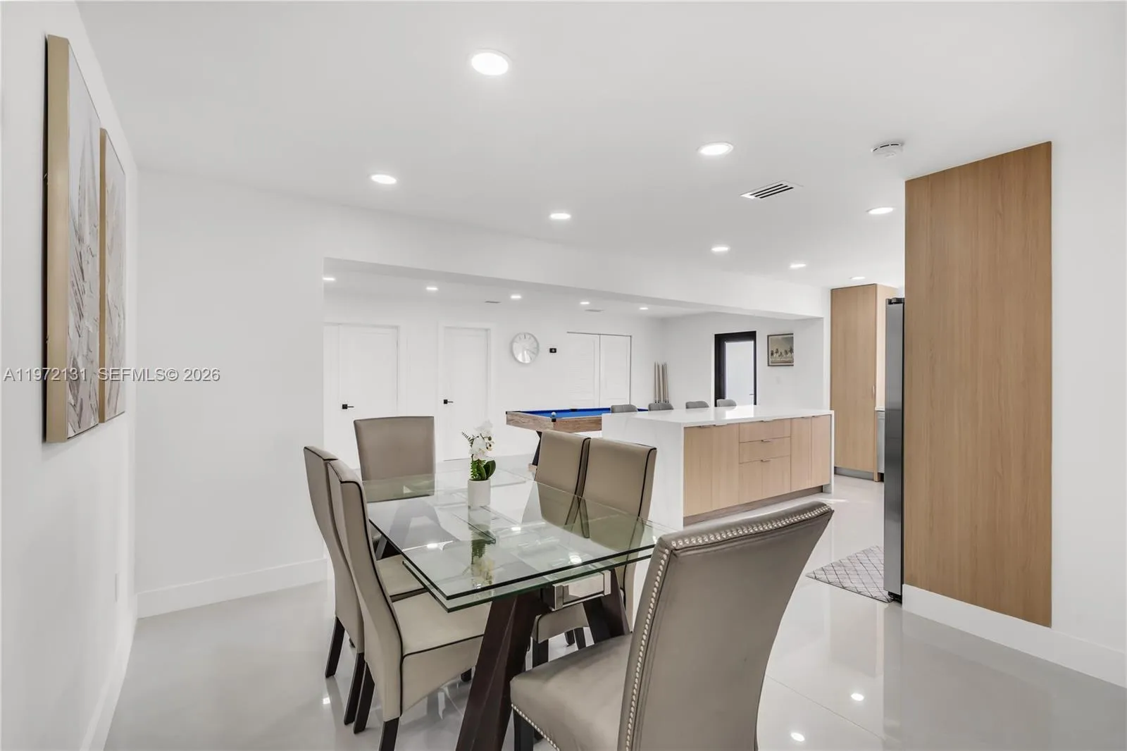 Fully remodeled 5-bedroom, 3-bathroom home ideally located in Miami. Between Miami Shores, Biscayne Park, and North Miami Beach. This spacious residence features a versatile layout including two primary suites, a secondary private master and a main primary bedroom complete with a spa-like bathroom offering a spacious shower and soaking tub. The open-concept kitchen is designed for modern living, showcasing a large quartz island, sleek finishes, and seamless flow into the main living and dining areas. Elegant porcelain tile flooring runs throughout the home, enhancing its contemporary feel. Major upgrades include impact windows, new PVC plumbing, updated electrical, a durable metal roof, and two separate HVAC units for optimal comfort and efficiency. Step outside to a generously sized backyard featuring a brand-new construction pool — perfect for entertaining or relaxing in your own private oasis. The spacious driveway provides ample parking. Prime location within walking distance to Barry University and close to Miami Country Day School. Just 15 minutes from the beach and vibrant Downtown Miami. Move-in ready! Furniture included. Schedule your showing today!