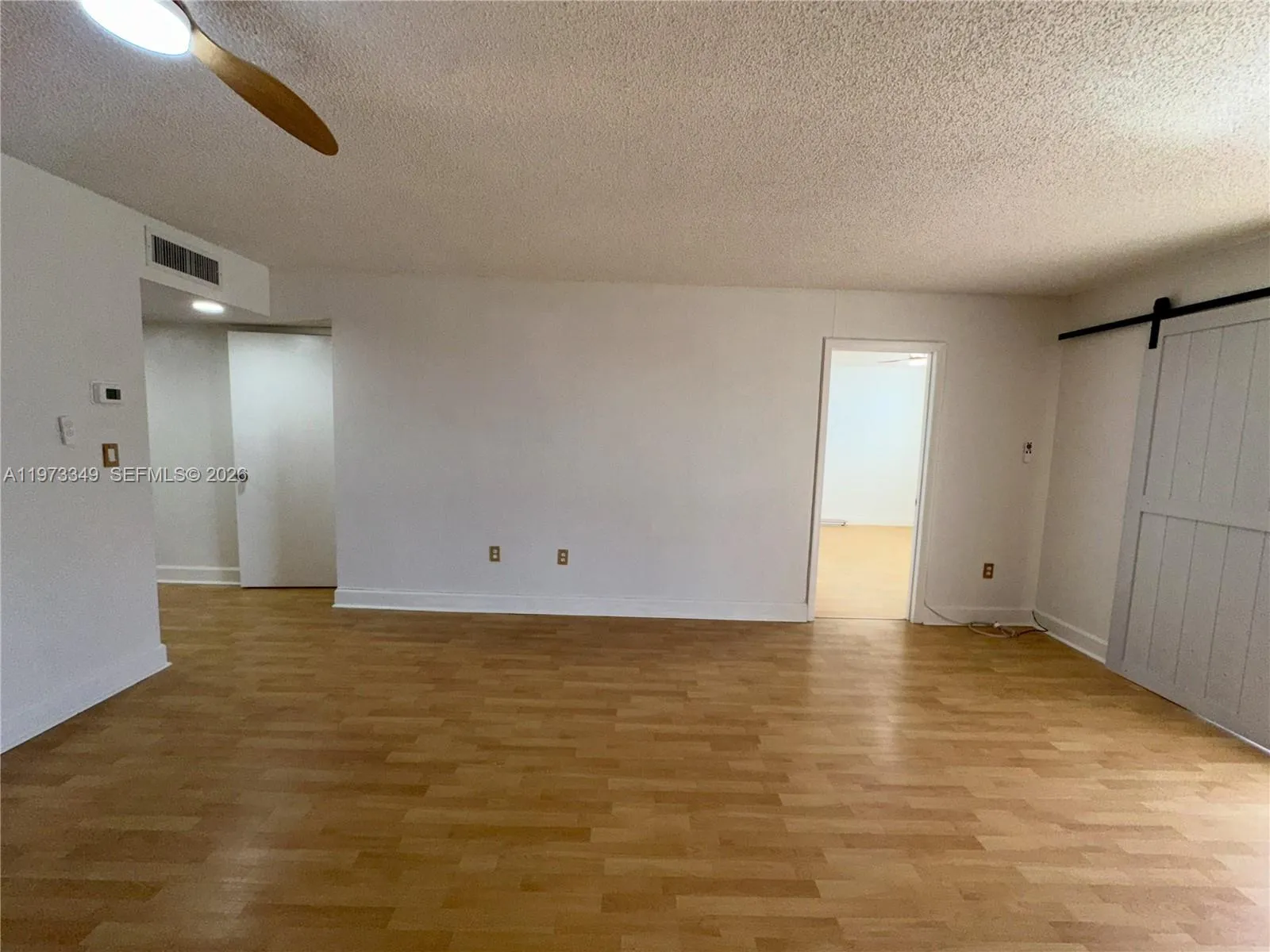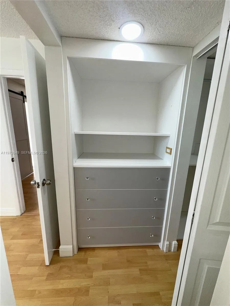 BEAUTIFUL 2 BEDROOM + 2 FULL BATHS UNIT IN PRIME LOCATION! Spacious and bright layout featuring wood flooring throughout the living areas and a modern accent wood wall that adds warmth and character. Open living/dining area ideal for entertaining with sliding barn-style doors leading to a private balcony with open views and excellent natural light. The primary bedroom offers a generous layout with a large walk-in closet, and the unit includes two full bathrooms (both with bathtub) for added comfort and convenience. Functional kitchen with ample cabinetry and counter space.