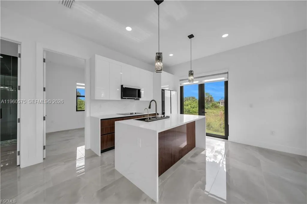 Welcome to your future home, where modern elegance meets thoughtful design in this newly constructed residence. Nestled in a prime Lehigh Acres location, this pristine property presents an exceptional opportunity for those seeking contemporary living with refined details. Step into a harmonious layout featuring three generously proportioned bedrooms complemented by two well-appointed bathrooms, offering the perfect balance of privacy and comfort. The heart of this home showcases a sophisticated open-concept kitchen that seamlessly blends functionality with style. Culinary enthusiasts will appreciate the designer touches, including premium quartz countertops, a spacious island perfect for casual dining and entertaining, and a complete suite of new stainless steel appliances. The carefully curated appliance package includes a refrigerator, dishwasher, built-in microwave, and range, all selected to enhance your cooking experience. Thoughtful attention to detail is evident throughout, from the sleek porcelain tile flooring that flows seamlessly through each room to the impact-resistant windows and doors that provide both security and peace of mind. The property’s strategic location outside of flood zones…Refer to supplemental remarks for full description!!!!