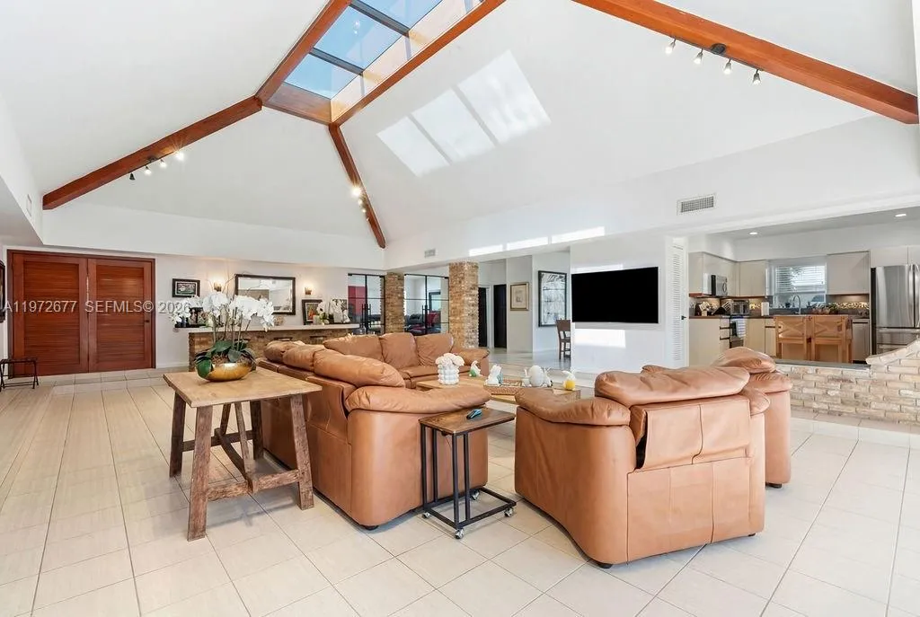 Beautiful and spacious 1-story home on an oversized lot, offering incredible indoor–outdoor living. This property features a bright open layout, large family and living rooms, vaulted ceilings, and classic brick accents. The expansive kitchen includes ample counter space and a center island, perfect for entertaining. Enjoy a stunning screened-in patio with a sparkling pool providing year-round enjoyment. Generously sized bedrooms, updated bathrooms, and a large primary suite with walk-in closet add comfort and convenience. Additional features include a circular driveway, laundry room, and a versatile extra room ideal for office, gym, or guest space. A rare opportunity to own a well-maintained home with great character and exceptional space.