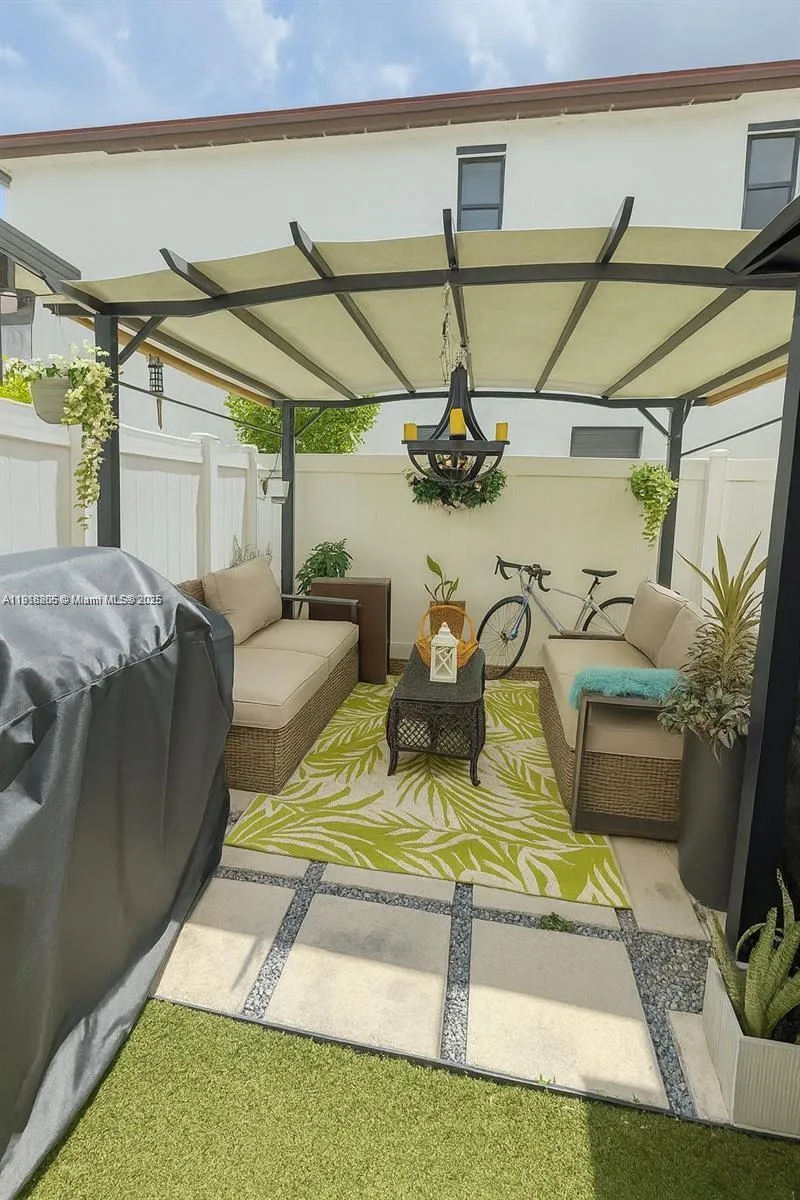 Impact windows and solar panels enhance this beautifully maintained 3 bed, 2.5 bath rental home, offering energy efficiency and peace of mind. The bright open floor plan features a modern kitchen with stainless steel appliances and spacious island seating. Living and dining areas flow seamlessly to the private outdoor patio, perfect for relaxing or entertaining. Upstairs, generously sized bedrooms include a comfortable primary suite with walk-in closet. Stylish finishes, updated bathrooms, and ample storage add to the appeal. Ideally located near schools, shopping, and major highways—this move-in ready home combines comfort, style, and sustainability.