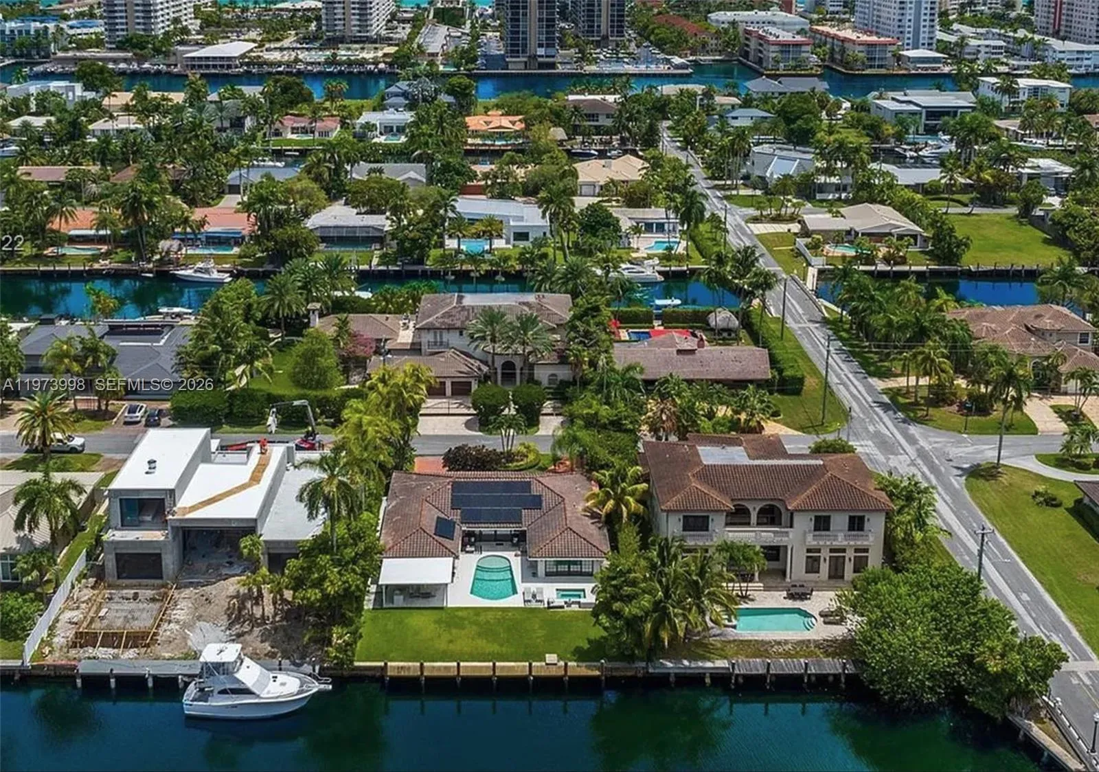 Make some memories at this family-friendly oasis by the water! .This stunning 4-BR, 4.5-bath villa boasts a chic mid-century modern interior and an open, waterfront backyard with breathtaking views of the boaters’ paradise in Golden Isles, Hallandale Beach. Step through French doors into your private retreat, featuring a heated pool, an in-ground hot spa, and an outdoor kitchen with a covered dining area —perfect for al fresco meals. Or you can rent a boat with access to the intracoastal… PLEASE READ BROKERS REMARKS BEFORE CALLING FOR SHOWINGS.