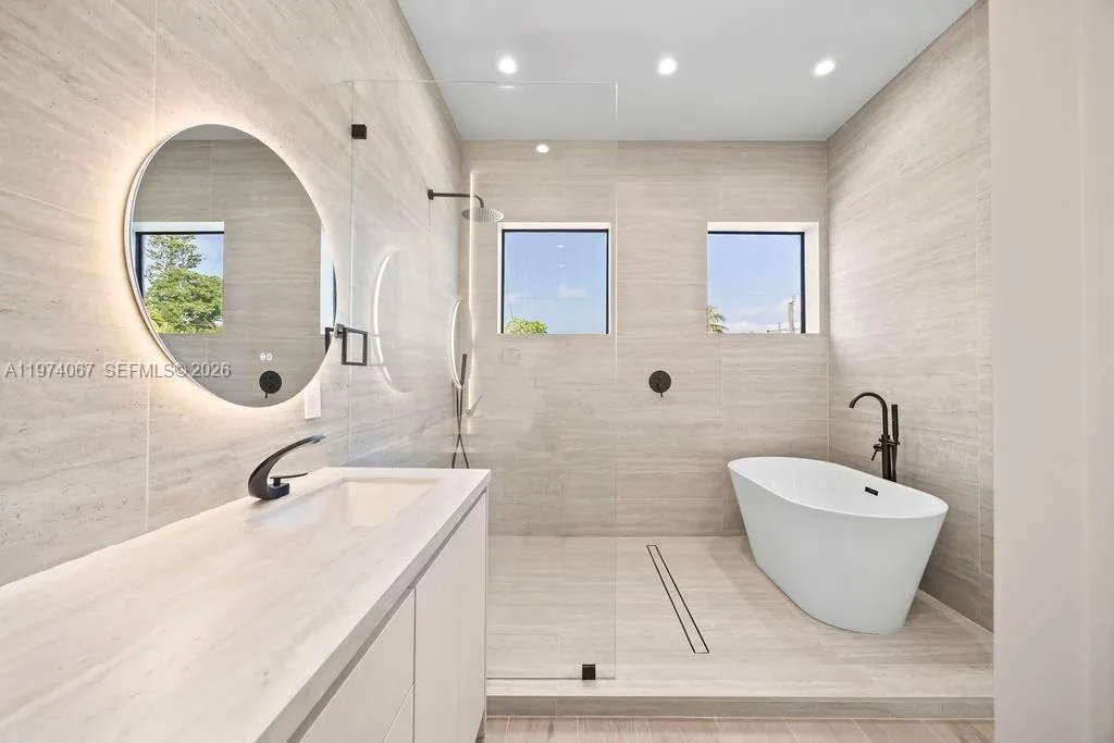 1135 & 1137 NE 11th Ave, Fort Lauderdale, FL – Lake RidgernrnNew construction residence offering 4 bedrooms and 3.5 bathrooms in the desirable Lake Ridge neighborhood. Modern open-concept floor plan with floor-to-ceiling windows providing abundant natural light throughout.rnrnContemporary glass kitchen design in white and light wood finishes, featuring panel-ready JennAir appliances and a spacious island overlooking the main living areas. Built-out closets provide functional storage solutions throughout the home.rnrnPrimary suite includes a spa-style bathroom with oversized shower and custom closet build-outs. Dedicated laundry room with utility sink.rnrnInterior features include integrated ceiling speakers throughout the home and pre-wired security camera system.rnrnPrivate backyard with outdoor BBQ area and a 2-car garage.rnrnModern design, quality finishes, and exceptional natural light.
