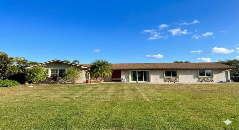 Corner lot estate on over 35,000 SF in desirable Southwest Ranches. This 5-bedroom, 3-bath home offers approximately 4,000 SF of living area (as per owner) and plenty of room to expand, customize, or create your dream outdoor retreat. Enjoy a private pool, lush fruit trees, and expansive yard space with endless possibilities. Perfect for buyers seeking privacy, space for toys, RVs, boats, or future additions. Rare large-lot opportunity in a prime location.