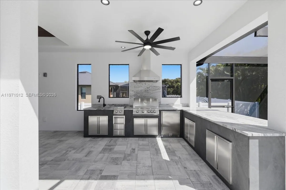 Experience elevated Florida living in this stunning new construction luxury residence with custom design & details throughout. Spacious 3 bedrooms, 3 full baths, plus a private den—perfect for a home office or flex space. Designed with impressive volume ceilings and an open layout, this home blends sophistication with modern functionality. Expansive impact windows and doors flood the home with natural light while providing peace of mind and energy efficiency. The gourmet chef’s kitchen is designed to impress, offering an abundance of high-end cabinetry, quartz counters, premium appliances and dedicated wine and coffee bar. Outdoors, enjoy your own resort style oasis with custom heated pool & spa, premium picture window screen enclosure and a professionally designed true summer kitchen & eating bar. Ambiance lighting creates the perfect setting for alfresco dining and sunset entertaining. Retreat to a spa-inspired primary en-suite with dual rainfall shower heads and a large freestanding soaking tub, smart toilet, dual sinks and walk-in closets with custom built-in organizational systems. Each additional bedroom offers comfort and privacy with access to well-designed en suite bathrooms. A well-appointed laundry room with abundant storage supports effortless daily living. The oversized three-car garage with epoxy floors. Luxury, innovation, and exceptional craftsmanship come together in this remarkable new construction home. Designed for today’s discerning buyer.