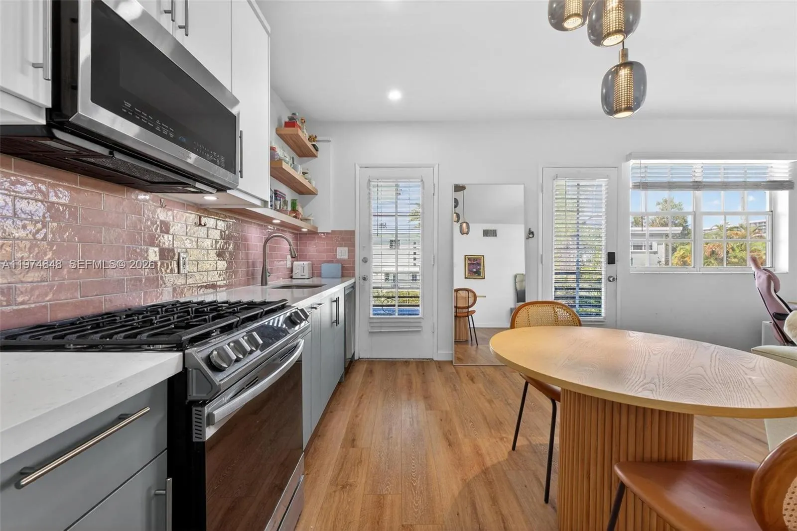 Beautifully updated 1-bedroom Unit, in the heart of North Beach. This bright and inviting unit features a modern kitchen with soft sage cabinetry, stainless steel appliances, quartz countertops, and a unique pink glass tile backsplash that adds warmth and character. Open shelving and contemporary finishes create a fresh, stylish atmosphere.rnThe spacious bedroom offers excellent natural light and a serene ambiance, complemented by warm wood flooring throughout. The layout is functional and comfortable, ideal for those seeking a cozy beachside home.rnEnjoy peaceful waterfront surroundings just steps away, including a pool area overlooking the canal—perfect for relaxing and enjoying Miami sunsets. Conveniently located minutes from the beach, parks, shopping, dining, and major roadways.rnA wonderful opportunity to live in one of Miami Beach’s most charming neighborhoods.