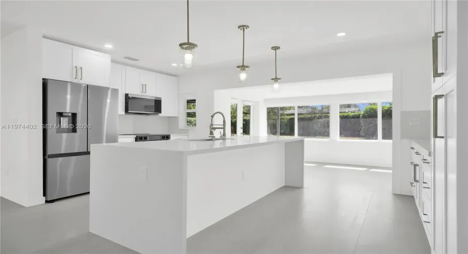 Completely updated home for rent in South Miami. 3Bed/2.5Bath, this meticulously updated home sits in the middle of a quiet low traffic street with mature trees on an oversized lot. Updates include a new roof (2026), modern kitchen with white solid wood cabinets and stainless steel energy efficient appliances, fully updated baths with high end finishes and elegant fixtures. Large functional kitchen island equipped with additional storage and double waterfall quartz counter tops. Large scale porcelain tile throughout, recessed lighting, covered patio, huge driveway, exterior lighting, mature privacy hedge, and expansive outdoor green spaces. Centrally located just over a mile from the University of Miami, 20 minutes from Miami International Airport, 10 Minutes from Dadeland Mall, and just over a half hour to Brickell. This home is sure to impress, schedule your appointment today! Contact listing agent for showings and additional information.