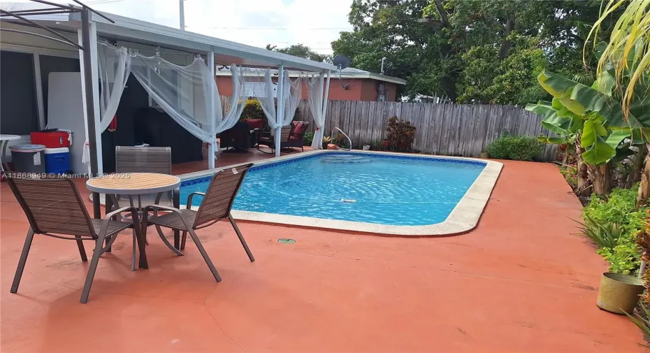 Charming 3-bedroom, 2-bathroom, w/pool single-family home in a friendly neighborhood. This residence boasts arn spacious open floor plan, seamlessly connecting the living, dining, and kitchen areas. The kitchen is equipped with stainless steel appliances. Private backyard oasis featuring a swimming pool, perfect for relaxation andrn entertainment. The expansive yard is adorned with a variety of tropical fruit trees, mango, avocado,rn guava, papaya, offering both beauty and the delight of homegrown produce. Additional features of this homern include updated bathroom, sprinkler system, burglar alarm system, storage shed, new electrical panel, newrn gutters, new grass, driveway repaved and widened, tank-less water heater, aluminum roof in the patio, flood lights in the front and backyard.