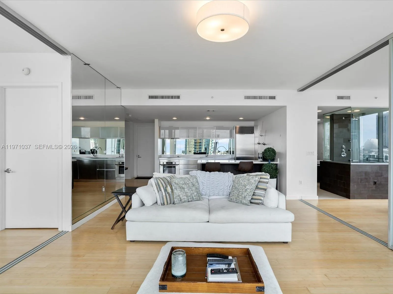 Live elevated at one of Miami’s most sought-after boutique luxury towers, Ten Museum Park, a landmark Downtown residence designed by award-winning architect Chad Oppenheim. A spacious 2-bedroom, 2-bath split floor plan showcasing breathtaking views of the Miami skyline through dramatic floor-to-ceiling impact glass. Perfectly positioned adjacent to and overlooking one of the world’s most iconic architectural masterpieces by Zaha Hadid — the stunning One Thousand Museum — this residence offers a rare front-row seat to globally celebrated design. The open-concept layout is ideal for entertaining, with a generous living area flowing seamlessly to a private balcony capturing sparkling city views. Sliding frosted glass doors provide privacy for both bedrooms while maintaining natural light throughout. The sleek kitchen is appointed with stainless steel appliances, top of the line cabinetry, and countertops, blending modern elegance with functionality. Located directly across from Museum Park and steps to the Pérez Art Museum Miami, Phillip and Patricia Frost Museum of Science, Kaseya Center, and Biscayne Bay residents enjoy unmatched walkability and cultural access. Five-star amenities include sunrise and sunset pools, resistance and cold plunge pools, jacuzzi, full-service spa, two fitness centers plus spin and yoga studio, 24-hour concierge, valet parking, and on-site management. Iconic architecture, resort-style amenities, and premier location define this exceptional offering.