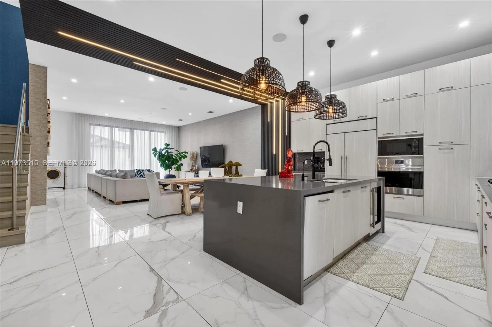 Exquisitely upgraded luxury residence located in the prestigious Downtown Doral South community. This sophisticated home showcases exceptional craftsmanship and high-end finishes throughout, featuring elegant porcelain flooring, custom wood wall paneling, and refined contemporary design elements that elevate every living spacernrnThe gourmet kitchen has been fully upgraded and serves as the heart of the home, offering premium appliances, sleek modern cabinetry, and luxury countertops designed for both functionality and stylernrnThe outdoor living area is designed for relaxation and entertaining, featuring a heated pool, creating a private wellness-inspired retreat. Additional upgrades include a whole-house water purification system, Tesla EV charger, and a professionally integrated whole-home sound system.rnrnThe property also offers a converted garage currently used as a game room or flex space, ideal for a home gym, entertainment lounge, or additional living area. The spacious driveway accommodates up to five vehicles in addition to the garage.rnrnThis residence offers a rare opportunity to own a turn-key, fully upgraded luxury home in one of Doral’s most desirable communities. An option is available to purchase furnished or unfurnished.rnrnIdeally located minutes from Downtown Doral dining and shopping, top-rated schools, parks, and major highways, this home blends modern luxury, comfort, and convenience.rnrnPrivate showings available by appointment. Virtual tour available