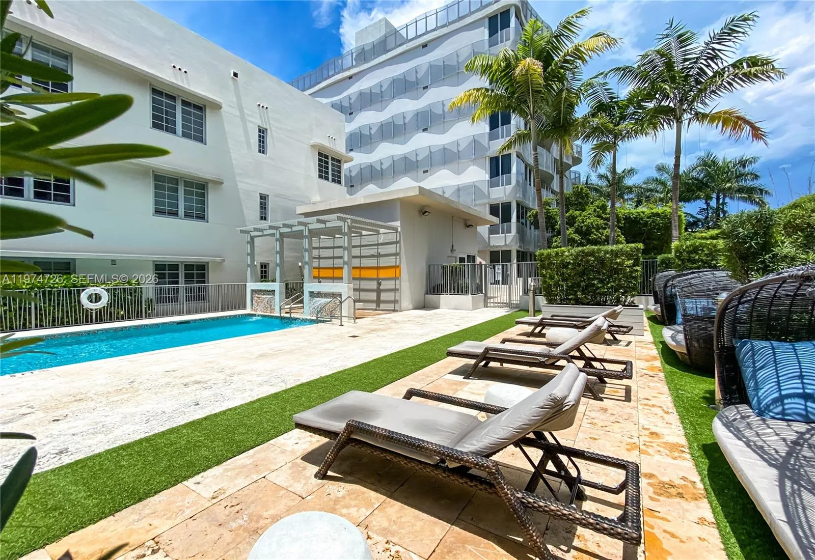 Top-floor corner unit, fully furnished and filled with natural light. Spacious layout with grey wood floors, Italian kitchen and bath, freshly painted, new bed/mattress, and washer & dryer in unit. Building offers 24-hour security, on-site management, 2 heated pools, a gym, a community room, and complimentary beach service (chairs & umbrellas) on 21st Street. Prime South Beach location — walk to dining and shopping, yet tucked away in a quiet enclave.