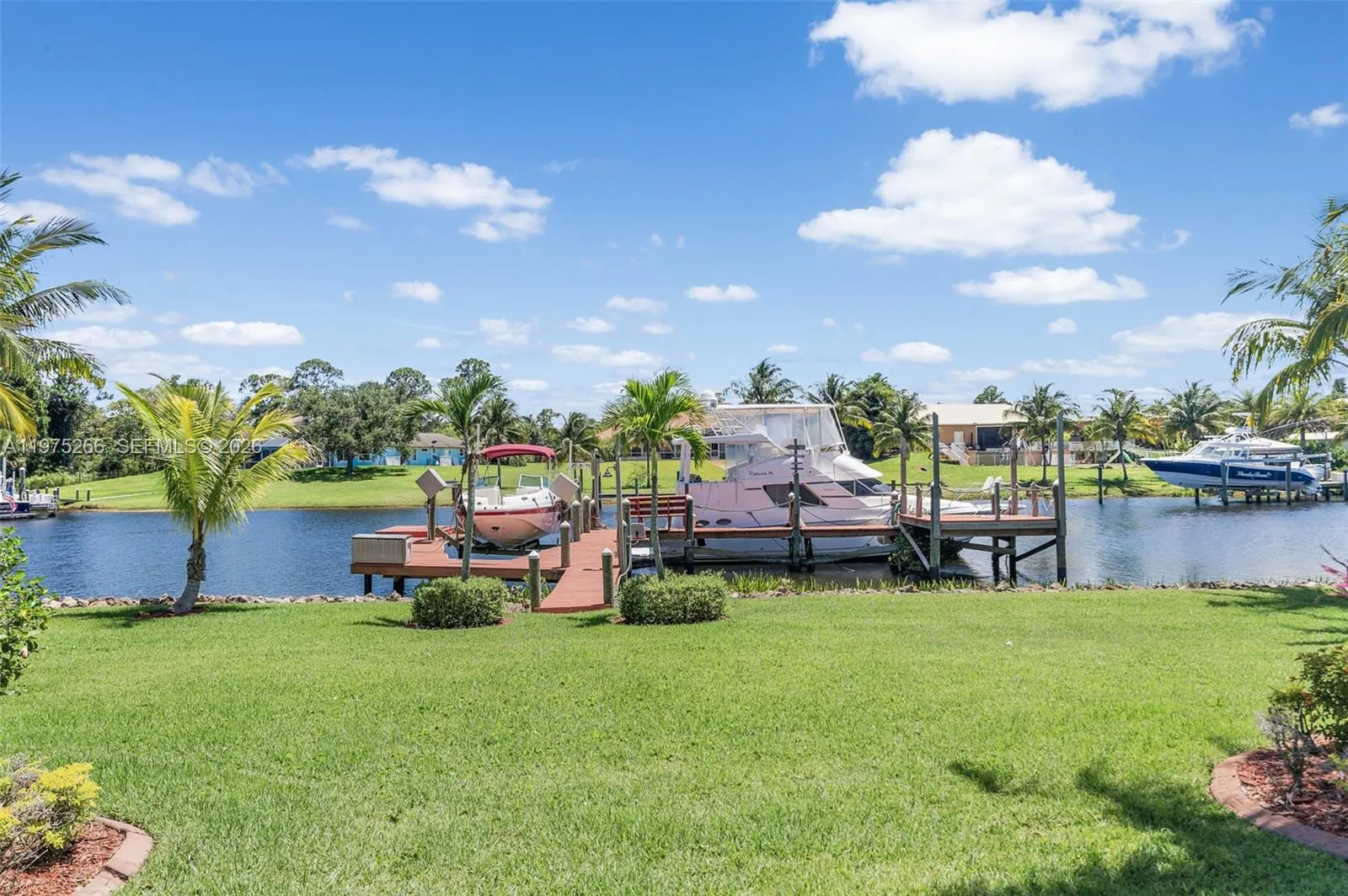 Welcome to your unique mini-sized estate, on a picturesque peninsula, where luxury meets tranquility with a mile and one-half view down deep water of the North Fork Saint Lucie River with ocean access. This stunning property boasts a seventy-foot dock with a boat lift capable of accommodating a 26 foot boat., as well as your “YACHT” and other water toys, drawing no less than 8 1/2 feet of water. Each room in this meticulously updated home offers breathtaking water views, complemented by voluminous ceilings that create an open and airy atmosphere. From high end finishes and materials to a 3 1/2 car garage with an A/C hookup and two ceiling fans, every detail has been carefully considered to provide the ultimate in comfort and luxury living.