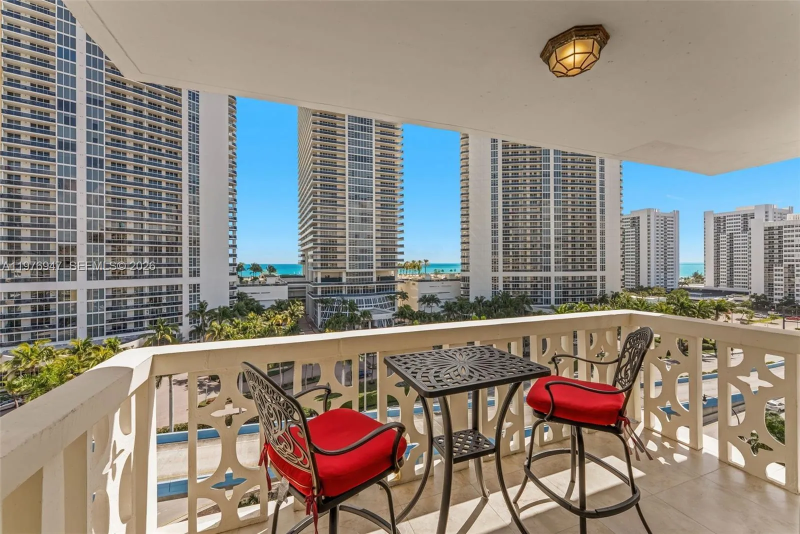 Must-See Corner Unit Completely Remodeled.Directly Across from the Beach! Gorgeous ocean views from every window. Enjoy breathtaking sunrise and sunset views from the private terrace. This bright, modern condo features 32″ x 32″ porcelain tile flooring throughout. Both bathrooms are fully renovated with floor-to-ceiling tile and modern shower systems.The open kitchen offers ocean views while you cook, custom wood cabinetry, granite countertops, and new 2024 stainless steel appliances. The primary bedroom features a custom walk-in closet, and the second bedroom includes a built-in closet system. Additional features include new impact windows and balcony door, a new A/C compressor (2019), two storage units, and a 2018 electrical panel and water heater. One assigned parking space and plenty of guest parking. The secured building offers a comunity pool overlooking the Intracoastal, a sundeck terrace, sauna, and an updated gym. No special assessments; 40- and 50-year inspections completed; building has reserves. Internet, cable, water, trash, and pest control are included. Prime Hallandale Beach location directly across from public beach access and within walking distance to shops, dining, groceries, “Etaru” Japanese Restaurant, and the Terrazas Ocean front rooftop terrace offering amazing sundays brunchs.20 minutes to Fortlauderdale International Airport. Near Aventura Mall and Gulfstream Park Racing & Casino. Great vacation home. No rentals allowed for the first 2 years.