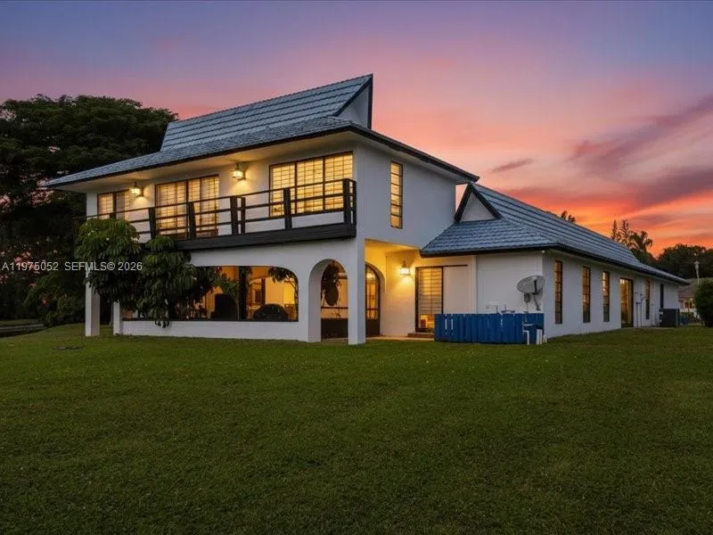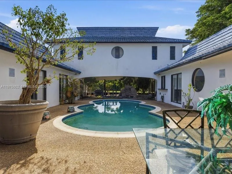 Offered for the first time since the 1970s, this rare generational estate in Eldorado Estates in Plantation is an Asian-influenced masterpiece of architecture and Japanese design, with a layout perfectly suited for multigenerational living. This expansive 5BD/4BA home spans OVER 4,400 SF of single-level living on a prime corner half-acre+ lot and showcases intentional horseshoe flow surrounding an intimate courtyard pool, creating seamless indoor-outdoor harmony. Recognized as a true architectural piece, the home was even selected for HGTV’s America’s Most Unique Homes, though declined due to timing. From the imported New Zealand blue metal tile forever roof to Zen waterfalls, gardens, shoji doors, a private dining room and office, sunken bar, and dramatic stove pipe fireplace, every detail reflects thoughtful craftsmanship and timeless vision. Walls of glass, soaring ceilings, and expansive living spaces celebrate light, privacy, and architectural integrity, offering flexibility for extended family, creative workspaces, or a future trophy estate. Held by 1 family for over 5 decades, this is not a trend or a flip but a legacy property with provenance, presence, and the rare opportunity to preserve, elevate, or reimagine a paradigmatic showpiece in one of Plantation’s most established enclaves.