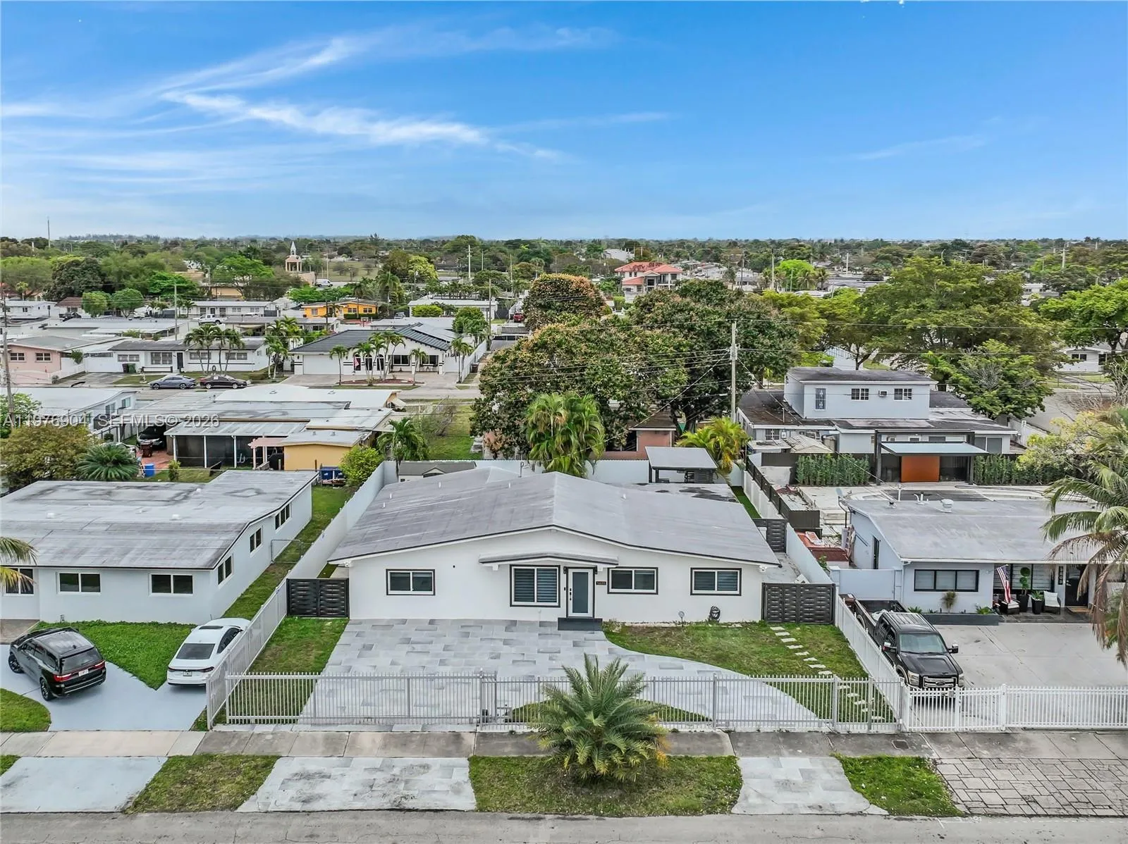 This beautiful Hialeah home is completely remodeled, with 4 bedrooms plus a den, a huge master suite with walk-in shower, and spacious built in closet, custom wall paneling, modern remodeled kitchen with stainless steel appliances, big family room, new porcelain floors throughout, freshly painted, washer and dryer, surveillance system, impact doors and windows, gated circular driveway. The fenced backyard is very large, with room for a pool, full bathroom outdoors, a covered pergola and built-in outdoor kitchen, lighting and a large double shed. This is a beautiful home for entertainment, ready to move in, very central, in a great neighborhood, close to main expressways, restaurants and shopping centers. So many updates to list, and very well taken care of. A true must see!