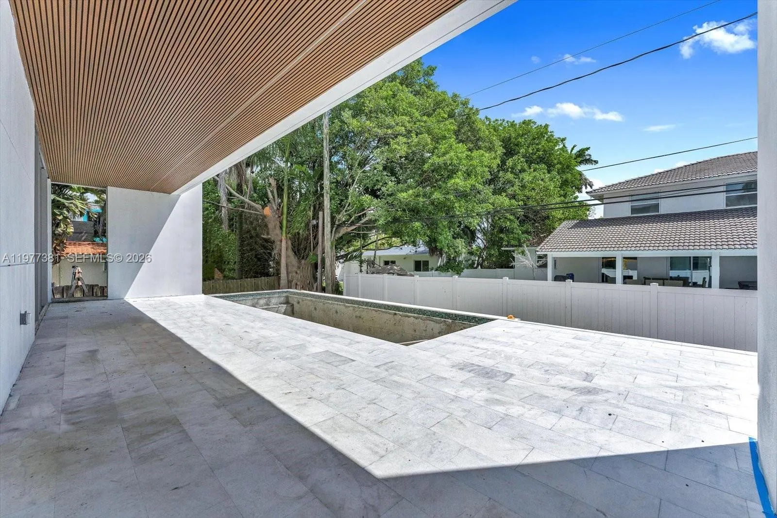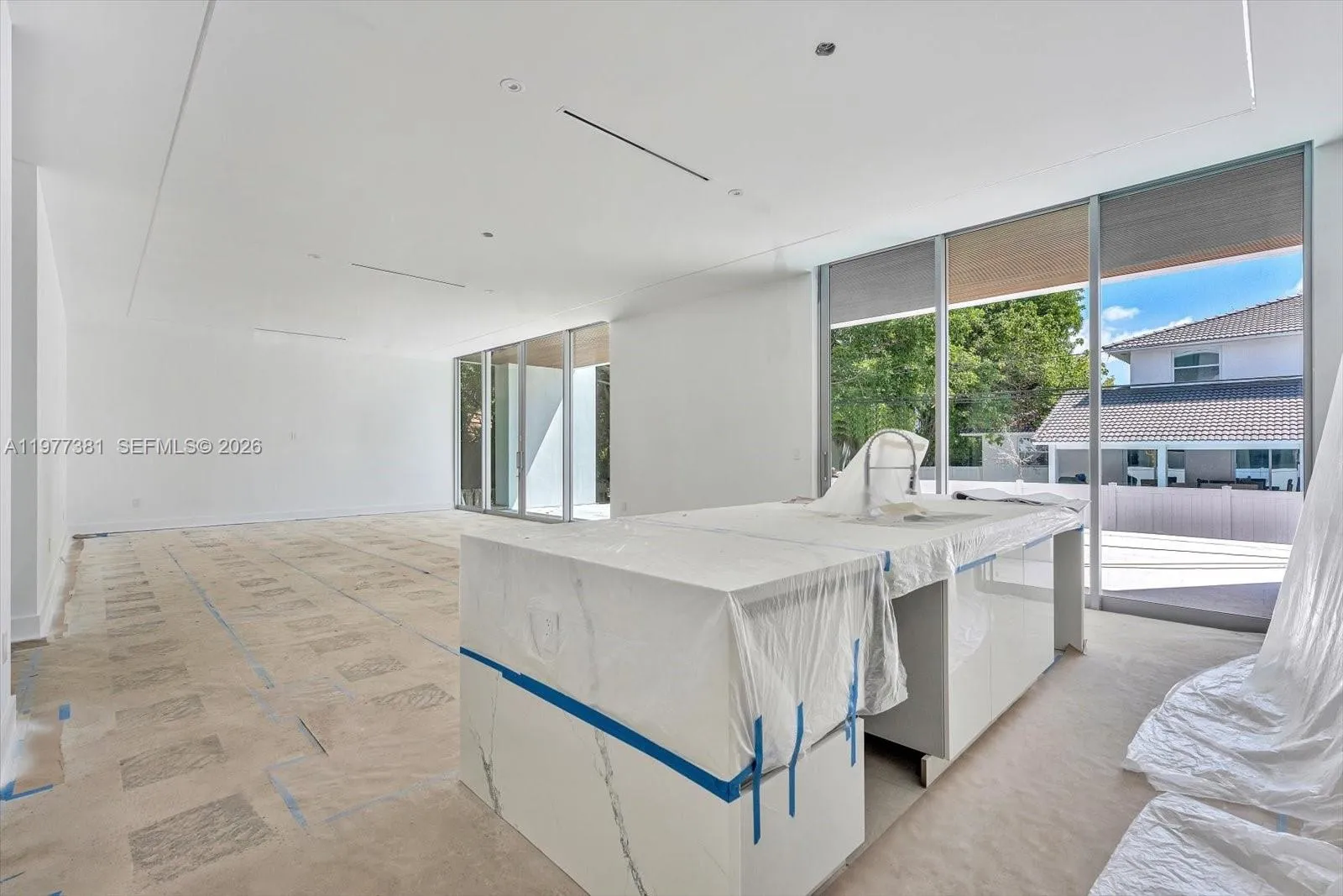 Discover this stunning new construction home in North Bay Village, thoughtfully designed for modern living. The residence features five spacious bedrooms, five full bathrooms, and an additional half bath across 4,410 square feet of beautifully crafted space.rnThe sleek contemporary exterior is complemented by expansive windows that flood the home with natural light. Inside, the open-concept layout is highlighted by floor-to-ceiling glass walls that showcase lush greenery and create seamless access to the private pool and patio—perfect for relaxing or entertaining guests.rnClean architectural lines run throughout the home, while the kitchen serves as a true centerpiece with a striking marble island and elegant fixtures that add a touch of everyday luxury. On track for April 15th completion.