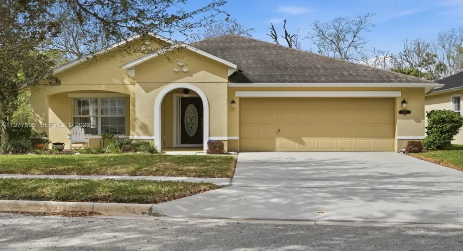Welcome to this beautifully maintained 4-bed, 2-bath home with over 2,000 Sq Ft of living space with a desirable tri-split floor plan designed for both privacy and functionality. From the moment you arrive, the covered front porch creates a warm and inviting entrance. Inside you’ll find true hardwood flooring throughout and tile floors in the bedrooms. The spacious layout features an open feel perfect for everyday living and entertaining, with an abundance of natural light streaming in from the many windows throughout the home. The kitchen is equipped with newer appliances and is conveniently located near the main living areas, while a newer washer and dryer add everyday convenience. The primary suite offers a relaxing retreat with dual “his and hers” closets and a well-appointed bathroom featuring both a separate soaking tub and walk-in shower. Step outside to enjoy the fully fenced backyard and covered back porch, providing the perfect space for outdoor dining, pets, or relaxing evenings. The open lot beside the home gives only one direct next-door neighbor and additional privacy. Additional features include hurricane-reinforced garage door, available hurricane shutters, and a two-car garage. Located in a community with a low HOA, and conveniently situated near major roadways, shopping, and dining, and is just a short drive to the beach, Canal St, and Flagler Ave where you can enjoy some of the NSB’s best restaurants, boutiques, and coastal lifestyle!