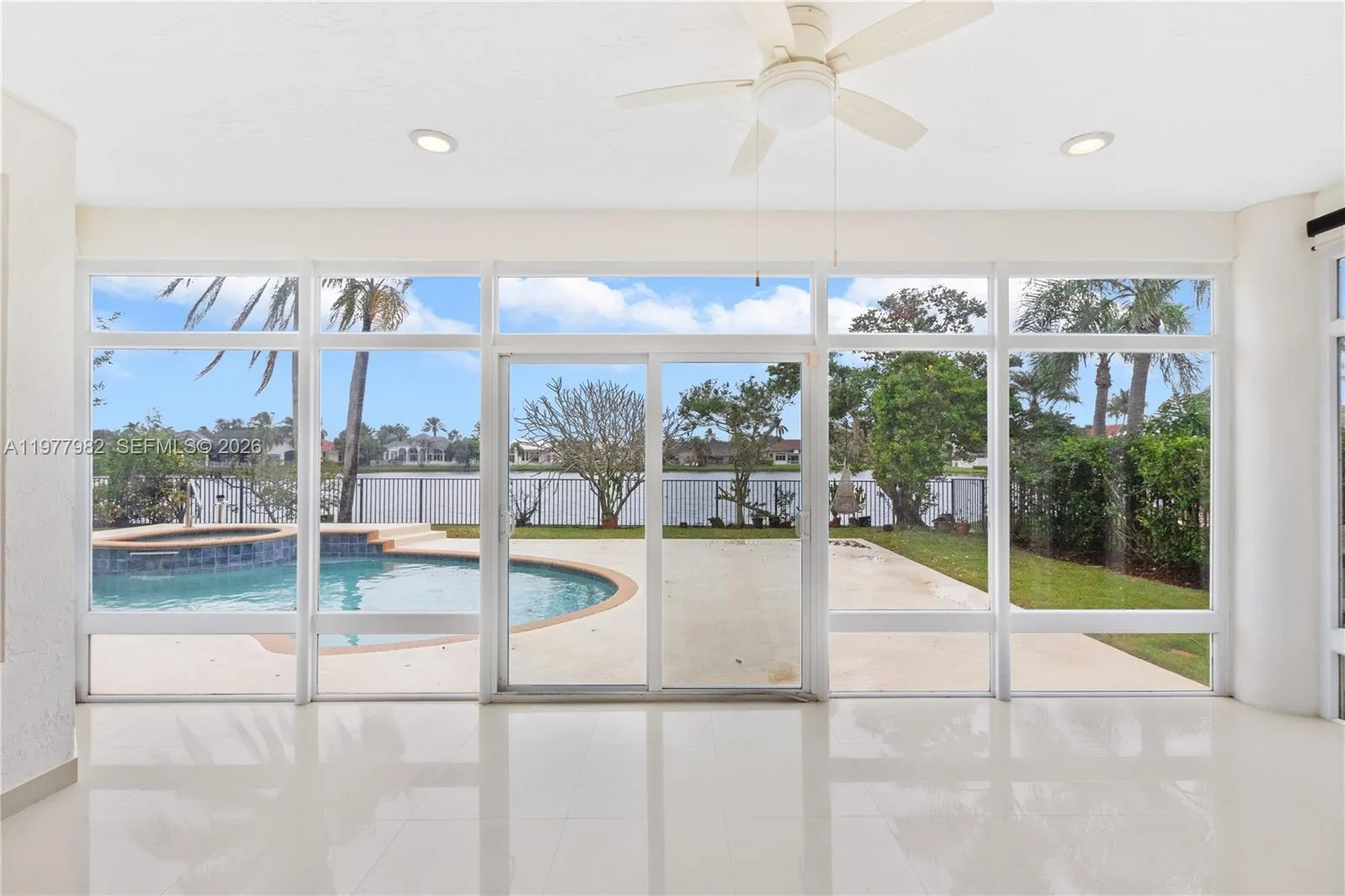 Immaculate builder’s model home in the gated Plantation Palms community, ideally situated on a premium lakefront lot with breathtaking panoramic views. This beautifully renovated residence features porcelain tile and solid wood flooring throughout, along with a stunning marble wood-burning fireplace and custom bar area—perfect for entertaining.rnrnThe remodeled kitchen showcases custom cabinetry, newer stainless steel appliances, and elegant Silestone countertops. Additional upgrades include custom interior doors, hurricane impact windows and doors, a full standby generator, and wiring for surround sound and a home theater system.rnrnExtended enclosed spaces provide bright, versatile rooms ideal for a den, playroom, or home office. The spacious primary suite offers a dedicated dressing area, custom walk-in closet, and a spa-inspired bathroom designed for comfort and relaxation.rnrnStep outside to your private, fenced lakefront oasis featuring a huge patio, heated saltwater pool, exterior lighting, and lush landscaping—perfect for enjoying South Florida living. Additional updates include a new A/C and numerous upgrades throughout. A must-see home that truly needs to be experienced in person.