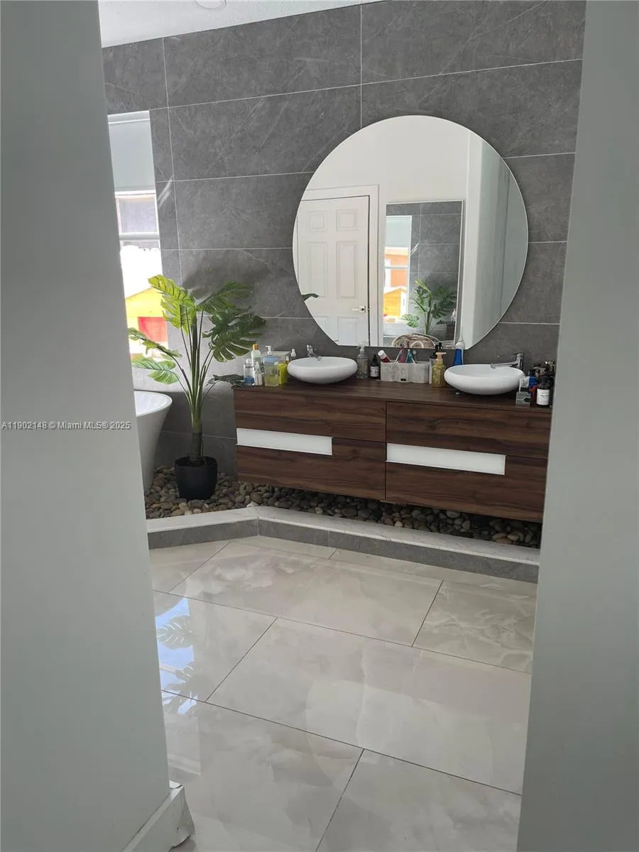 Stunning One-Story Home in the Gated Resort-Style Community of Monaco Cove at Sunset Lakes!rnFall in love with this gorgeous 3-bedroom, 2.5-bath residence featuring an inviting saltwater pool and a beautifully designed outdoor oasis perfect for relaxing or entertaining. Enjoy high-volume ceilings and elegant tile flooring throughout. The spacious open-concept kitchen boasts an oversized island with seating, granite countertops, modern cabinetry, decorative backsplash, and stainless steel appliances. The brand-new bathrooms and fresh interior paint give the home a modern, move-in-ready feel. Step outside to your private fenced backyard with a large pergola and sparkling pool — your own tropical retreat. This home truly combines style, comfort, and resort living at its finest.