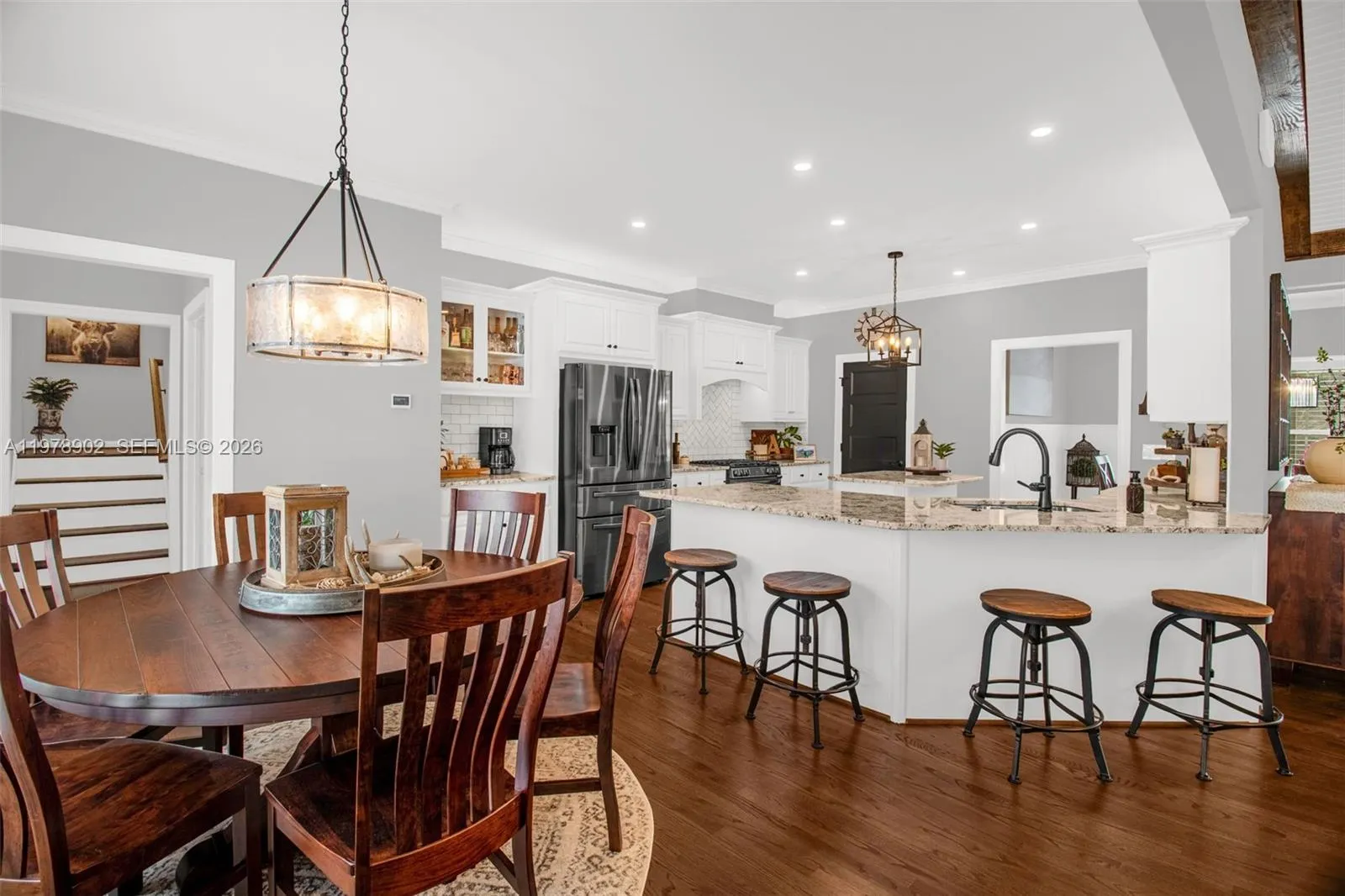 Country living meets luxury level finishes! This home is newly renovated! The large living space is comprised of the living room that boasts a shiplap vaulted ceiling with beams and a gas log fireplace, an open concept kitchen with custom cabinets, granite counters, stainless steel appliances, custom tile work, pantry, and breakfast area. The formal dining boasts trey ceiling with wood work and bead board picture railing walls, a look continued into the home’s office. Off the kitchen is the laundry with granite counters, built in ice maker, and ample cabinetry. The master suite is spacious and boasts an ensuite with dual vanity with granite, large tile shower, and spacious WIC with built ins. Two other bedrooms feature their own bathrooms complete with similar features. The massive rec room sits above the attached garage and boasts a half bath. Amenities continue outdoor with two covered porches, a deck, patio, pergola, and barn with sheds. Schedule your showing for this unique home today!