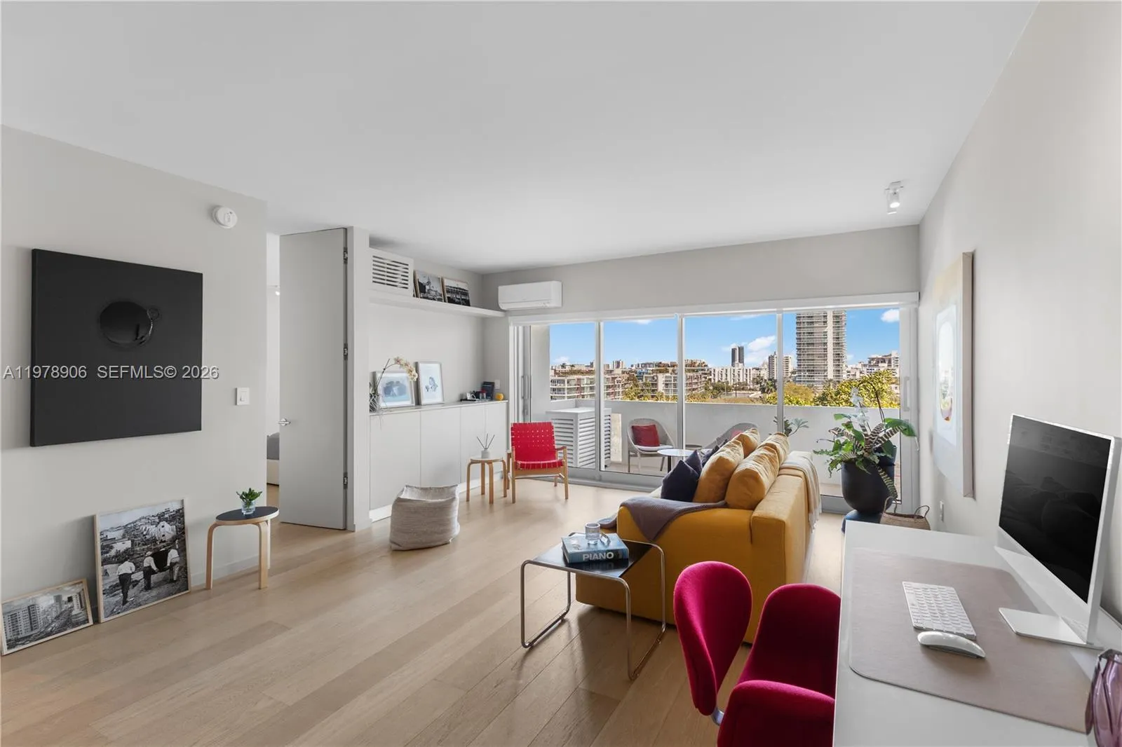 Impeccably renovated one bedroom apartment with chic wood floors throughout. Sophisticated and cool design with the utmost attention to details. Includes a spacious powder room and washer and dryer inside of the unit. Impact windows and newly permitted wall-to-wall sliding doors which open both ways to enjoy water and park views from an ample balcony. Spectacular kitchen with maximum functionality. This Morris Lapidus condominium has a stunning west facing pool and deck on the bay to sunbathe and rejoice in the most fantastic sunsets all year round. Located in trendy Belle Isle on the Venetian Causeway right across The Standard Hotel and just steps away from restaurants and grocery stores in Sunset Harbour and Lincoln Road. Ready to move in and easy to show!
