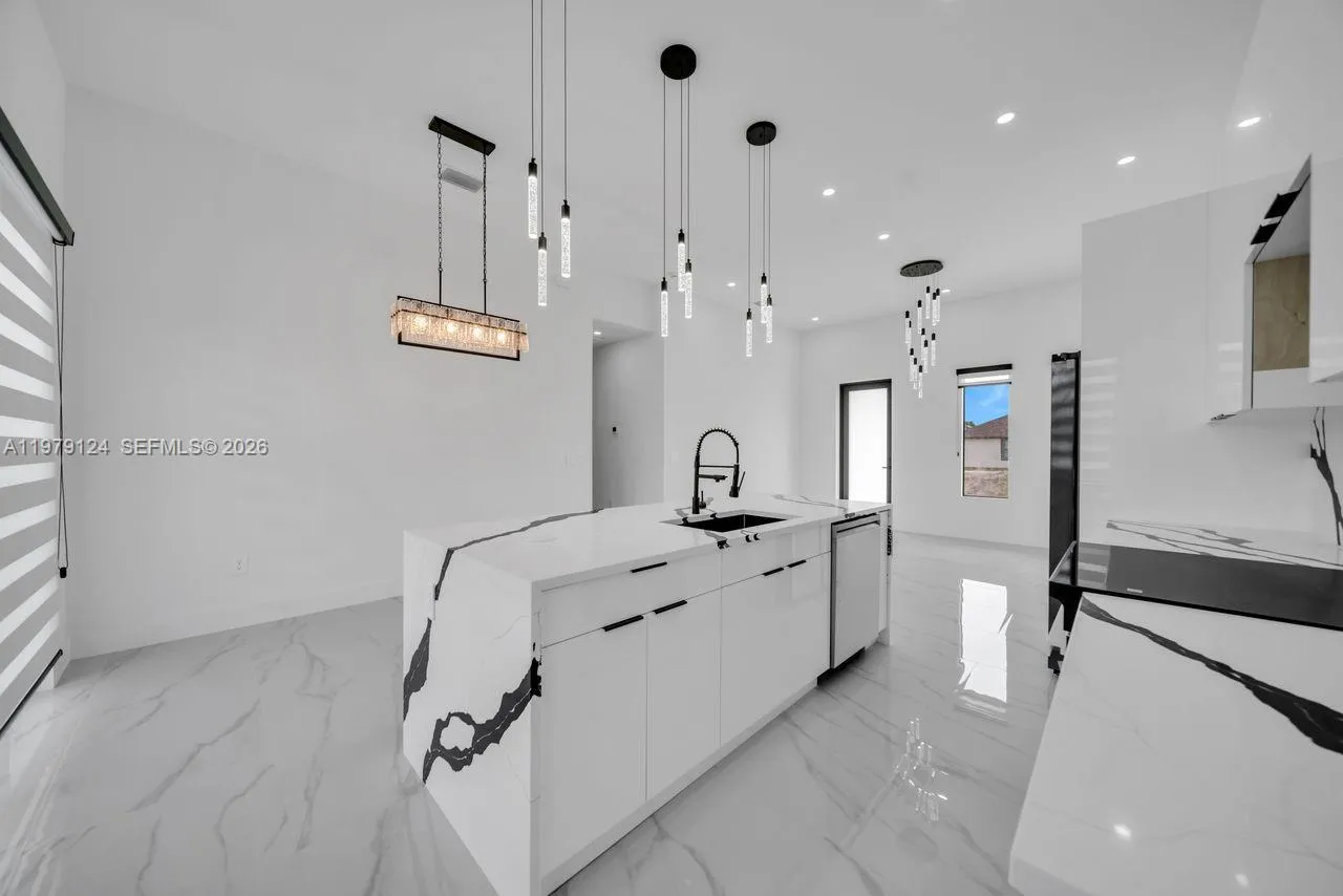 Welcome to your future home, where modern elegance meets thoughtful design in this newly constructed residence. Nestled in a prime Lehigh Acres location, this pristine property presents an exceptional opportunity for those seeking contemporary living with refined details. Step into a harmonious layout featuring three generously proportioned bedrooms complemented by three well-appointed bathrooms, offering the perfect balance of privacy and comfort. The heart of this home showcases a sophisticated open-concept kitchen that seamlessly blends functionality with style. Culinary enthusiasts will appreciate the designer touches, including premium quartz countertops, a spacious island perfect for casual dining and entertaining, and a complete suite of new stainless steel appliances. The carefully curated appliance package includes a refrigerator, dishwasher, built-in microwave, and range, all selected to enhance your cooking experience. Thoughtful attention to detail is evident throughout, from the sleek porcelain tile flooring that flows seamlessly through each room to the impact-resistant windows and doors that provide both security and peace of mind. The property’s strategic location outside of flood zones offers additional reassurance for homeowners. The residence’s exceptional location places you….. Refer to Supplemental Remarks for complete description!!!