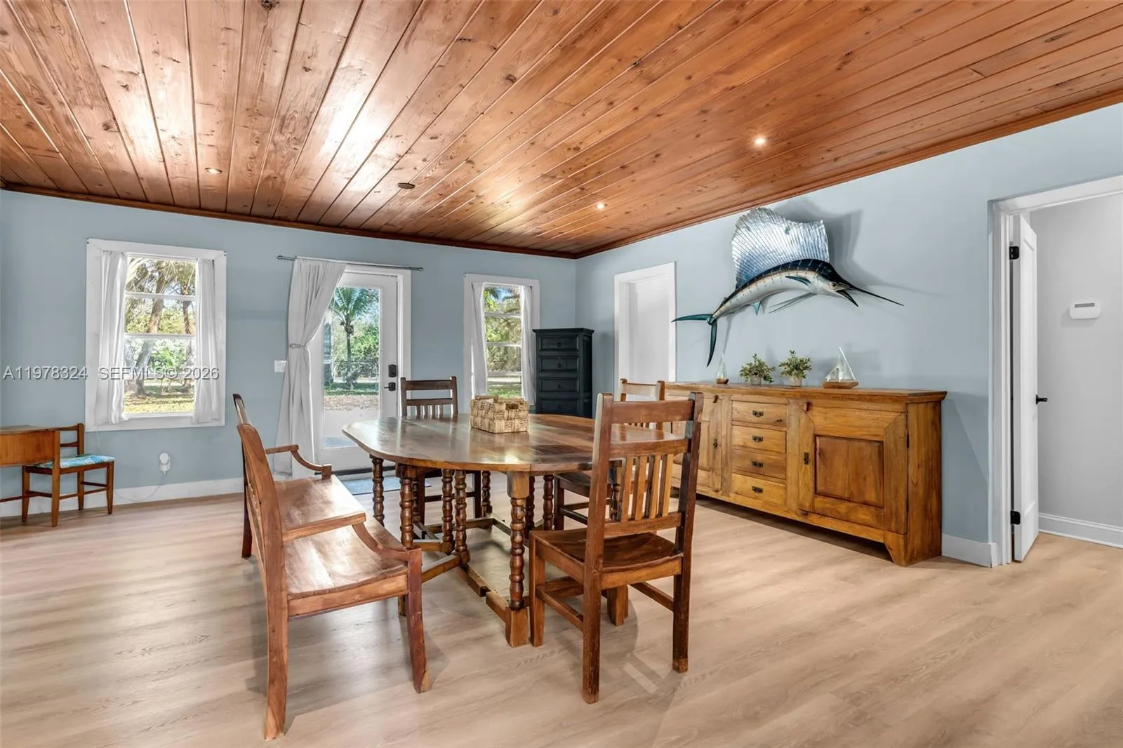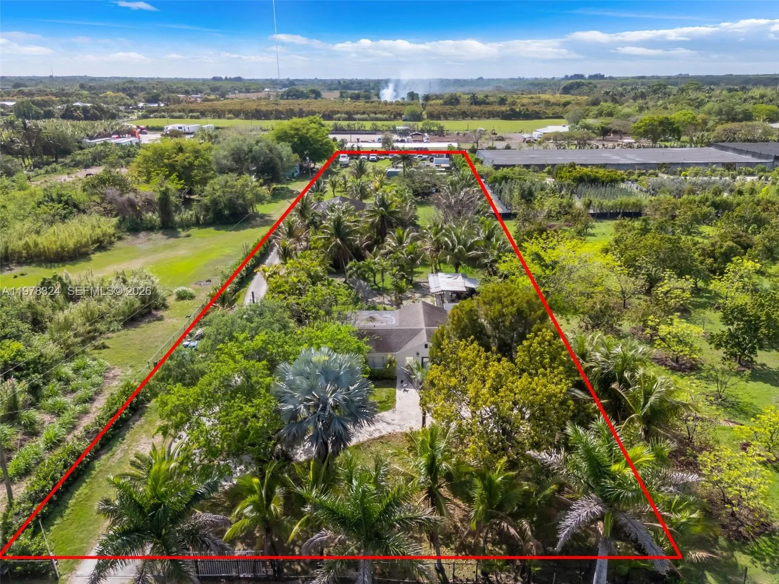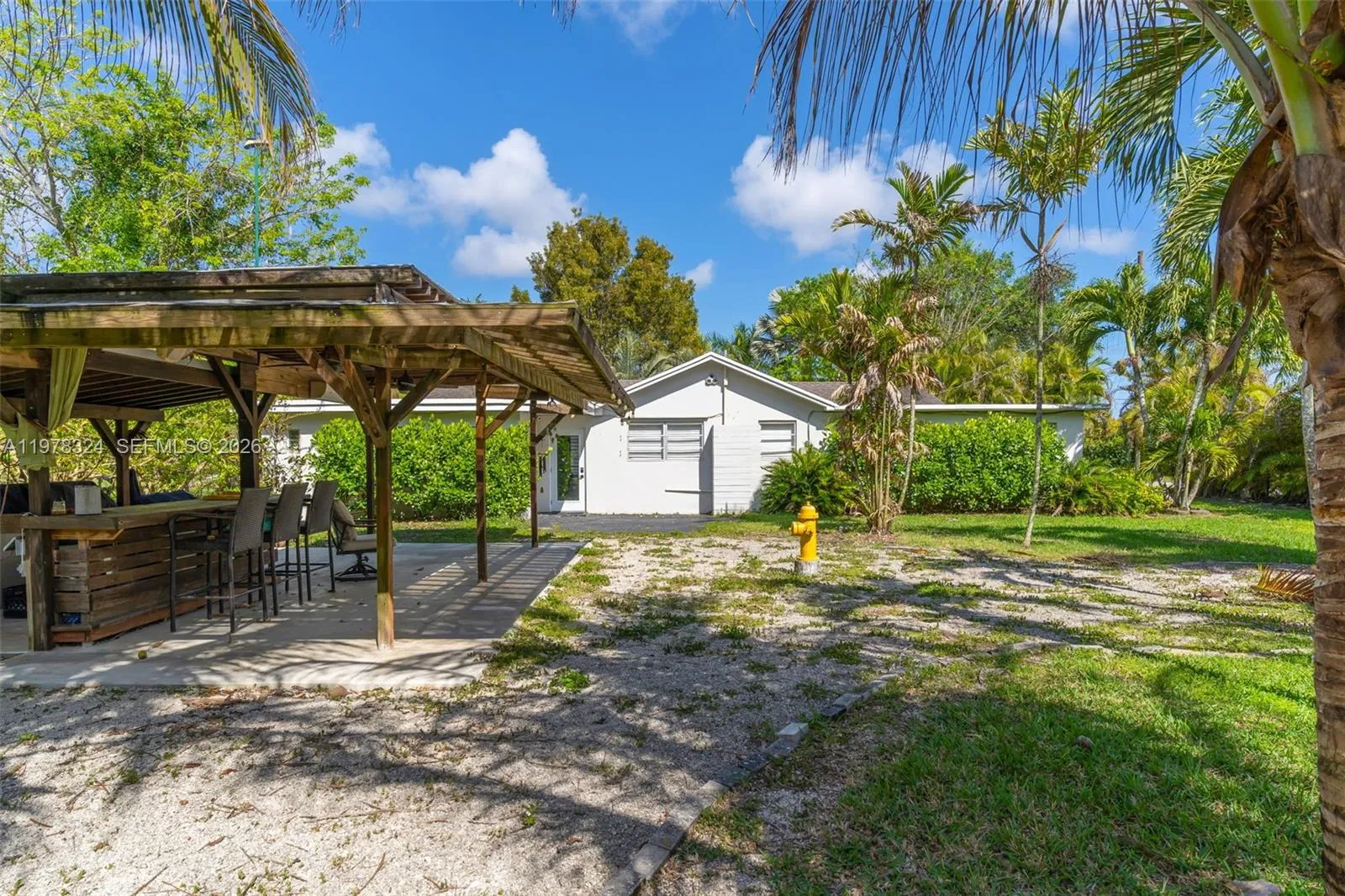 Captivating 3BD/2BA ranch-style home situated on nearly 2 acres, featuring a separate 2BD/2BA in-laws’ cottage—perfect potential rental income. The main home has been remodeled and includes a new roof and A/C unit. Interior features include a Florida room with bar area, formal dining room, and family room, providing comfortable and functional living spaces. Unique construction details include a Dade County pine roof and a concrete ceiling in the master bedroom.rnrnThe in-laws’ cottage offers its own charm with a partial wrap-around patio and wood roof, creating a relaxing outdoor setting.rnrnOutdoor amenities include a covered pergola over an outdoor BBQ/bar area and fire pit, ideal for entertaining. The property also features a well-maintained chicken coop and a post-frame barn, centrally located on the land. Plenty of space for gardening, hobby farming, or enjoying peaceful country living while still being conveniently located near local amenities.