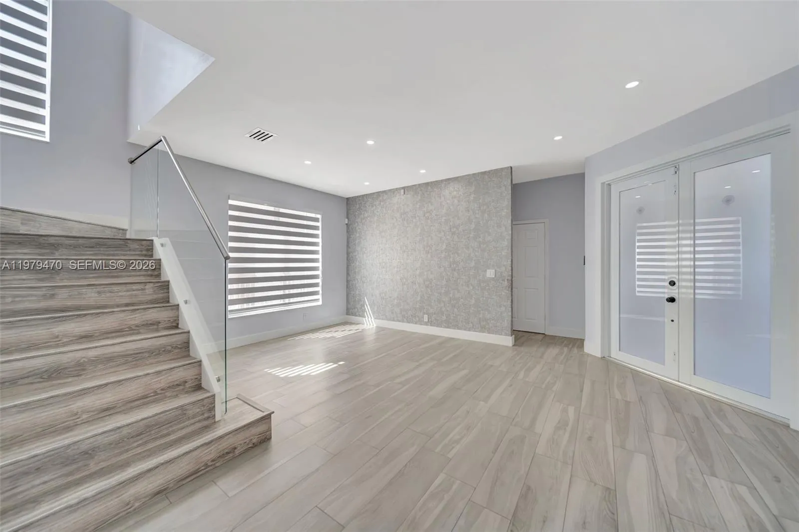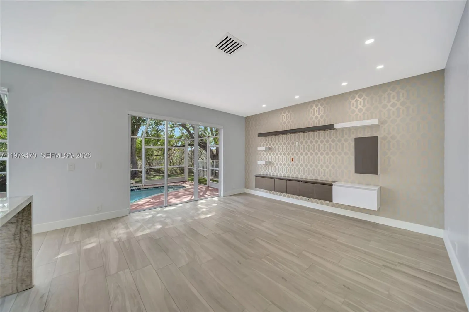 Stunningly Renovated 4- Bedroom, 2.5 Bath Pool Home in Silver Shores. This elegant 2- story home is located on a premium lot backing to a private nature preserve in the beautiful guard gated community of Silver Shores. This bright and spacious home features an open floor plan with high ceilings, recessed lighting, and elegant Spanish porcelain tile flooring throughout the main level. The designer gourmet kitchen showcases Taj Mahal Quartzite countertops, a waterfall island, Italian cabinetry, and high-end built-in appliances, including Sub-Zero/Wolf refrigerator, oven, coffee maker, Fisher & Paykel induction cooktop, Zephyr range hood, and GE Monogram wine cooler. The kitchen overlooks the outdoor patio and solar-heated saltwater pool, creating the perfect indoor-outdoor entertaining space. Upstairs features water-resistant vinyl flooring and a spacious primary suite with vaulted ceilings and dual walk-in closets. Additional features include glass stair railings, Aquabrass fixtures, Madeli vanities, impact front and sliding doors, accordion shutters, laundry room with cabinetry, and a 2-car garage. Prime location near I-75, shopping, dining, and more.