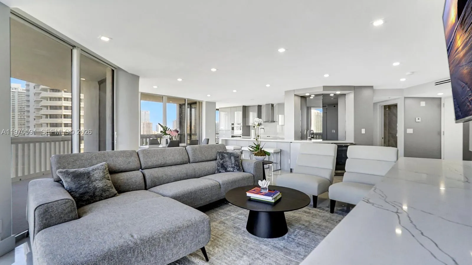 Spectacular corner residence offering breathtaking wraparound views of Williams Island, the marina, Intracoastal, ocean, bay, and city skyline. This modern 3-bedroom, 2.5-bath home features a desirable split-bedroom layout and an open-concept kitchen with quartz countertops, custom cabinetry, and a generous pantry—perfect for both everyday living and entertaining. The primary suite includes a spacious walk-in closet, while additional highlights include a dedicated laundry room with front-load washer and dryer, custom built-in closets, and sleek linear diffusers throughout. Enjoy the unmatched lifestyle of Williams Island with world-class amenities including 15 tennis courts, 4 pickleball courts, multiple dining venues, a full-service spa with indoor pool and daily classes, year-round social events, scenic walking paths, and a 105-slip marina. Resort-style living at its finest in one of Aventura’s most prestigious communities.