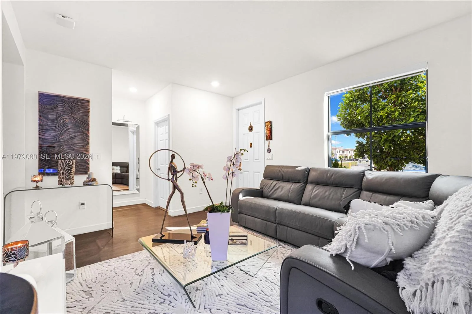 THE UNICORN OF AQUABELLA. This substantially renovated 2019 residence (3BD/2.5BA) boasts the community’s most coveted location. Enjoy unparalleled views facing the green space and playground, allowing you to watch your family play from your doorstep. Experience total privacy with NO REAR NEIGHBORS and solve the parking dilemma with abundant guest spots right at your door—a rare luxury. The interior is move-in ready, featuring brand-new wood flooring on the main level (no carpet!) and a sleek open-concept layout. Enjoy 24/7 guard-gated security and elite resort amenities. Won’t last!