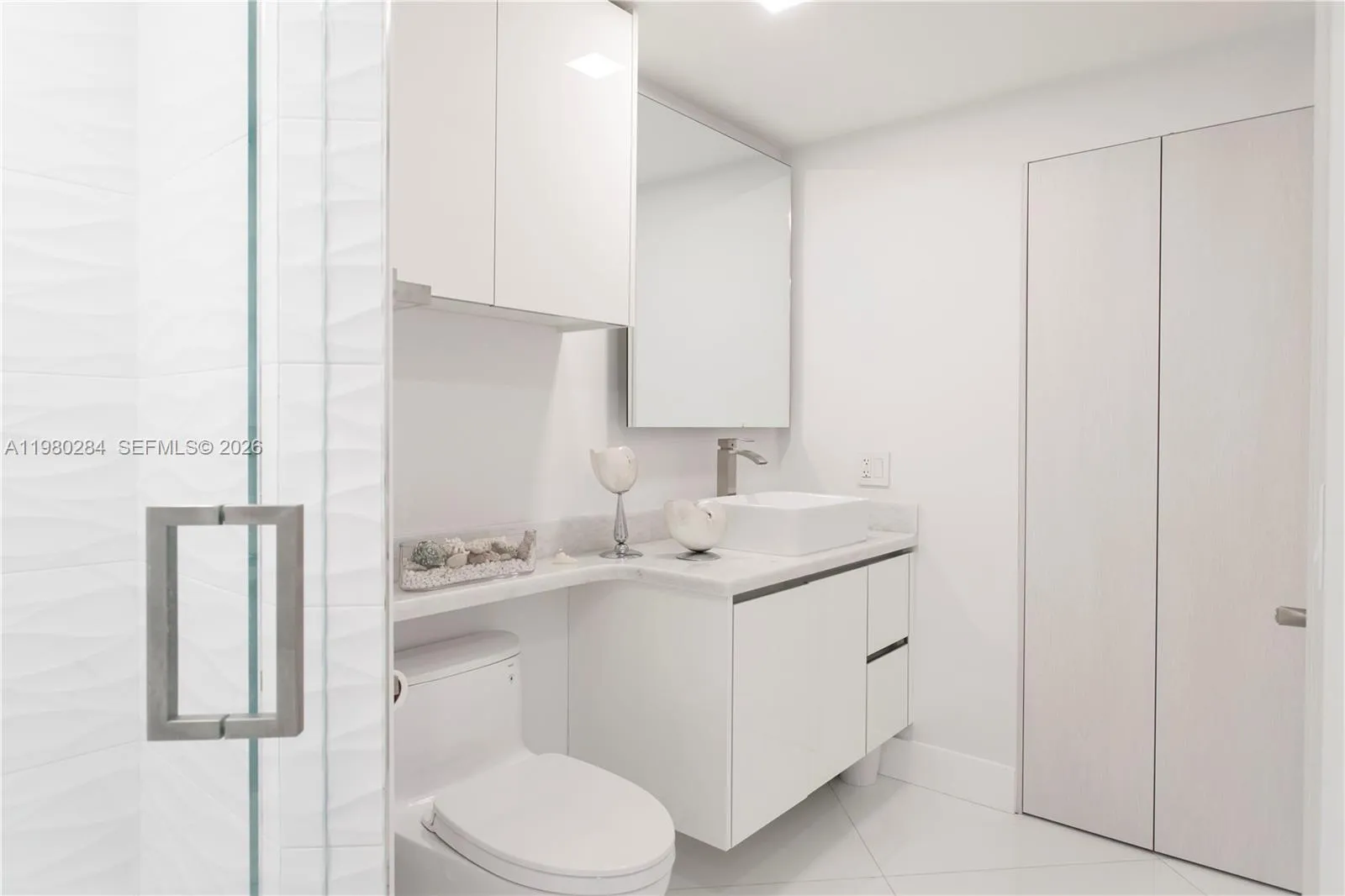 Corner residence on a lower floor with a beautiful connection to the ocean. Approximately $450,000 in renovations have transformed this home into a move-in-ready residence with exquisite details throughout, including gorgeous marble floors, custom built-ins, electric shades, and designer closets. Floor-to-ceiling glass fills the interiors with natural light, while the wraparound balcony captures beautiful views of the ocean, Intracoastal, and Miami skyline. The open kitchen flows seamlessly into a spacious living and dining area, creating both comfort and style. The primary bedroom suite features a luxurious bathroom and a custom-built closet. Located in the prestigious Green Diamond, residents enjoy resort-style amenities and one of Miami Beach’s most desirable oceanfront addresses. Offered furnished, excluding personal items.