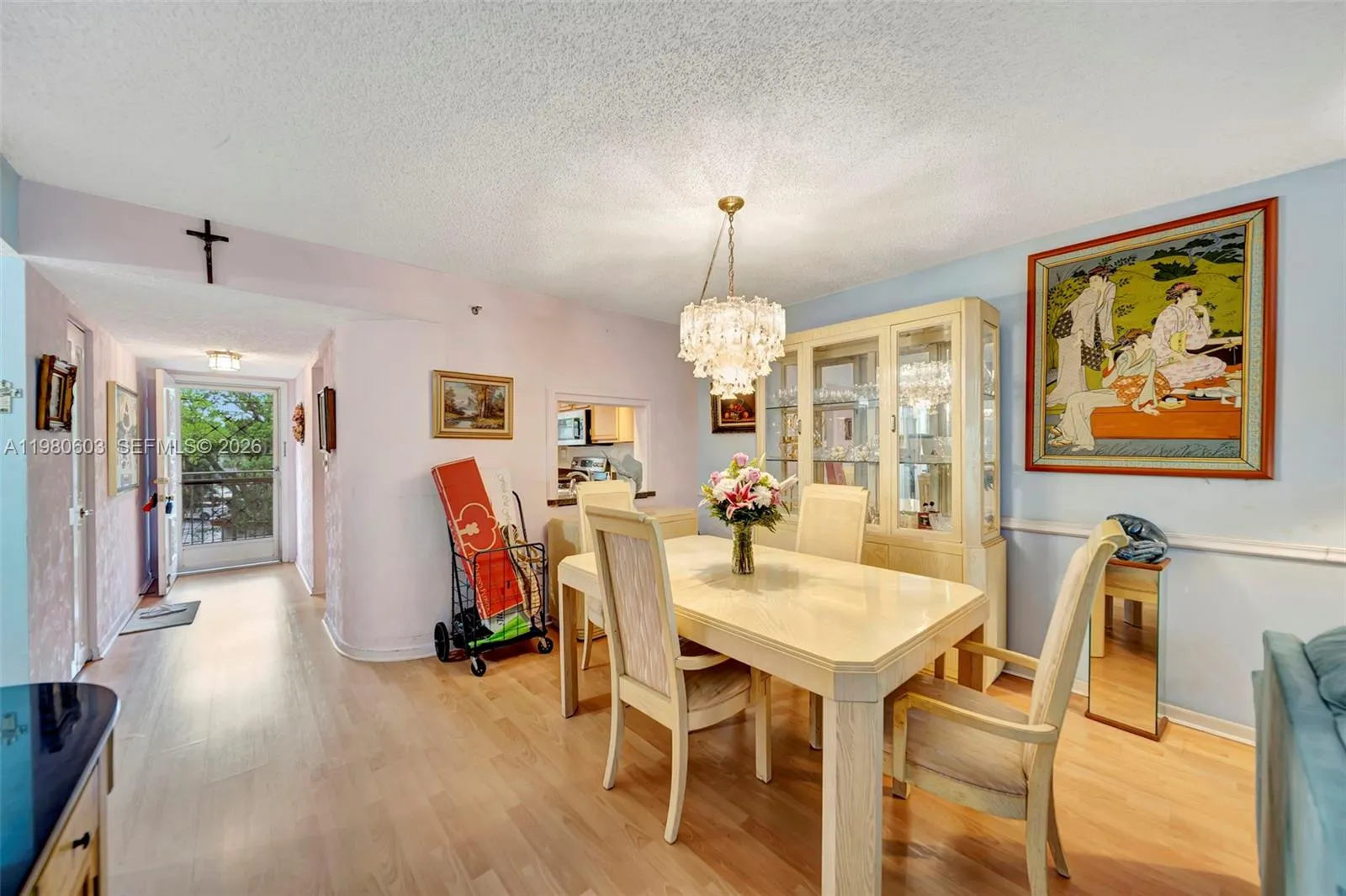Light and bright 2-bedroom, 2-bath condo in a secure gated community. The spacious living area flows seamlessly onto a private screened balcony—ideal for morning coffee or evening relaxation. The updated kitchen is equipped with stainless steel appliances, and the unit features laminate flooring throughout plus a convenient in-unit washer and dryer. Primary bedroom is extra spacious and opens up to the screened in patio via sliding glass door. Enjoy resort-style living with amenities that include a heated pool, fitness center, tennis and pickleball courts, BBQ area, library, billiards room, and 24-hour security. Close to major roadways, shopping, dining, and houses of worship. Easy to show!
