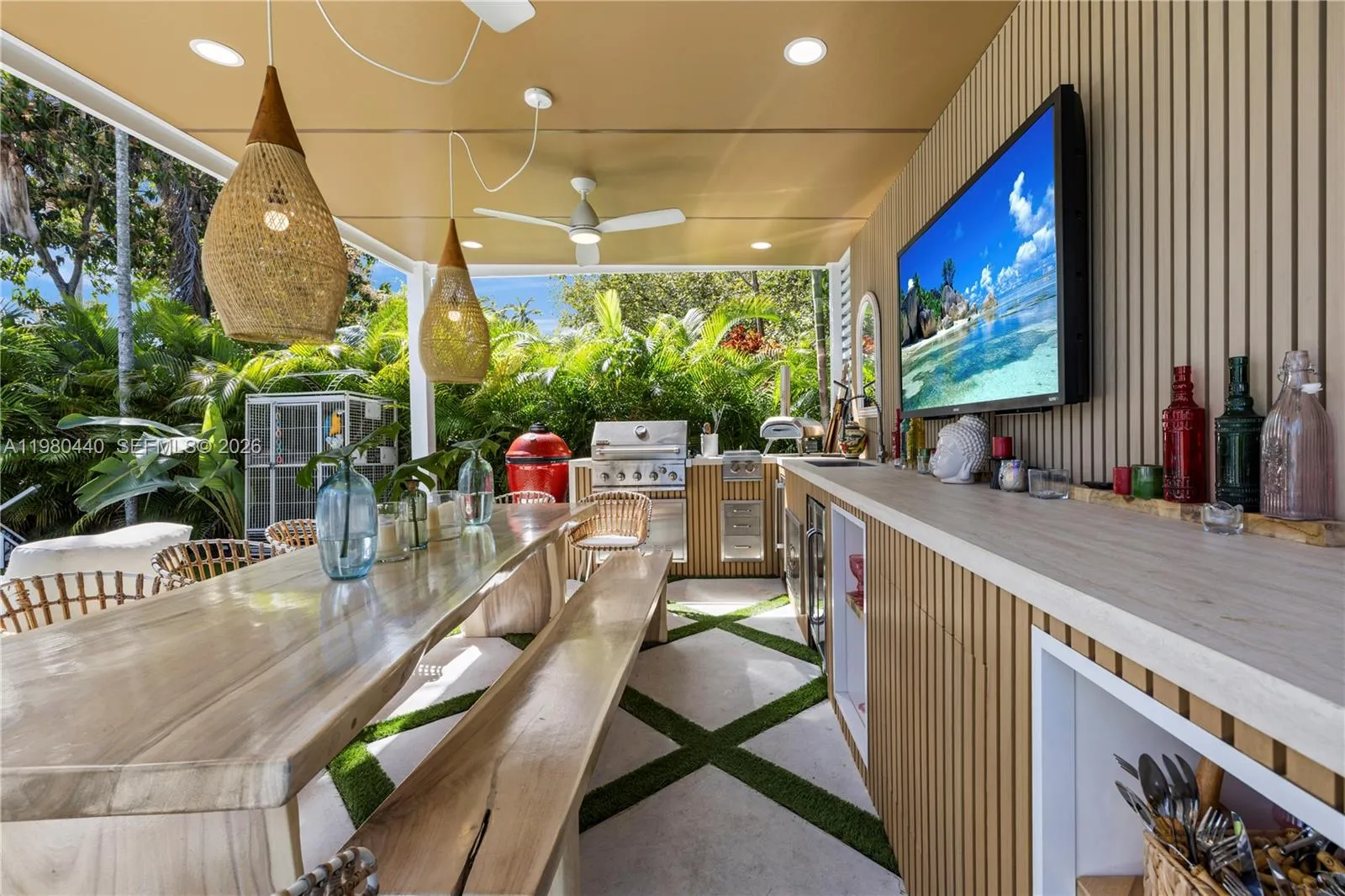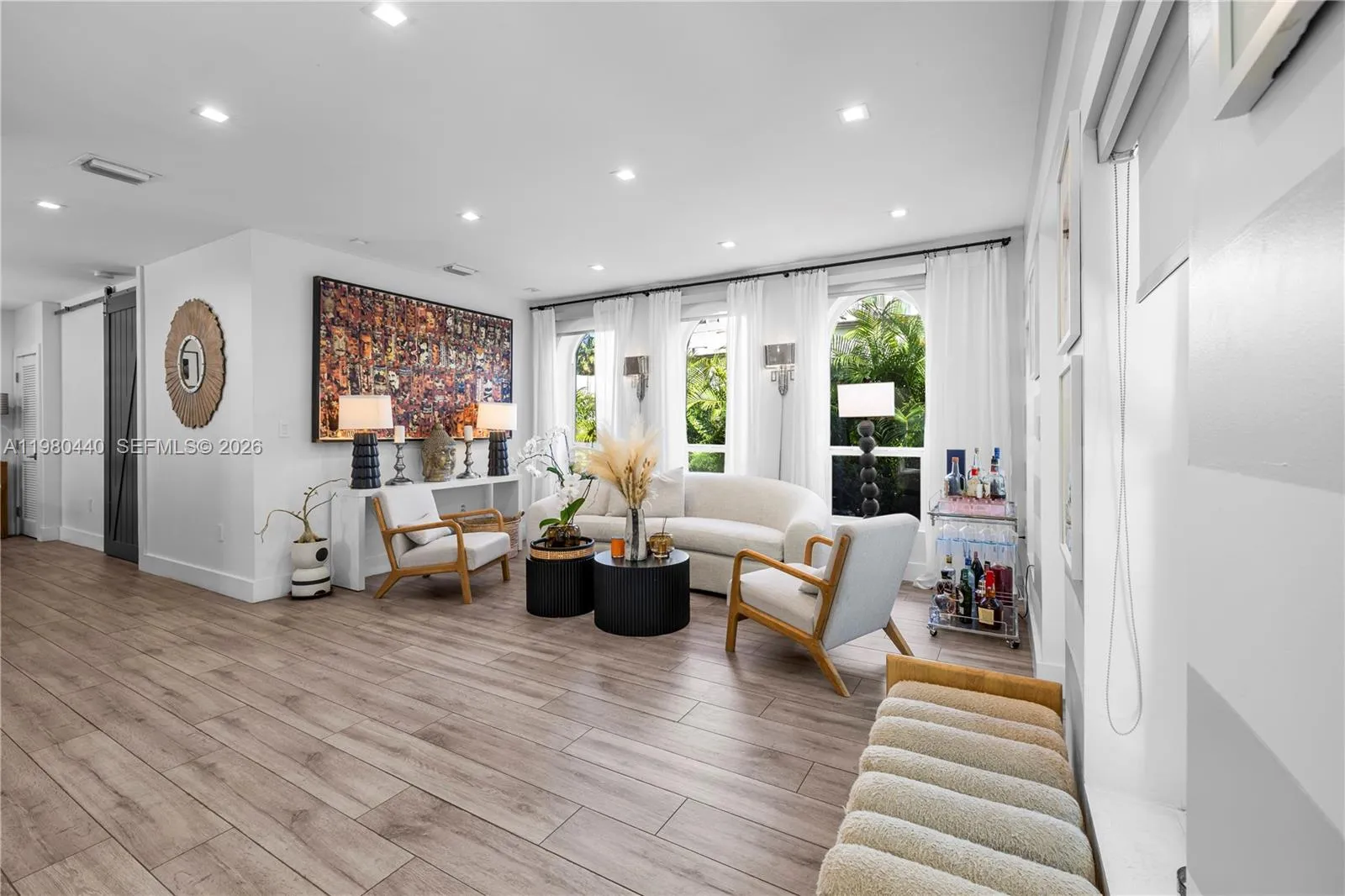 Stunning designer 4BR/3BA residence located in the highly sought-after Davis Harbour enclave of Miami Shores. This beautifully renovated home is filled with natural light and offers an elegant layout ideal for both everyday living and entertaining. The main level features a spacious primary suite with cabana-style bath opening to the pool, a sun-drenched guest bedroom with full bath, and a convenient laundry room. A sleek gourmet kitchen with quartz countertops and an oversized island with seating for six flows into the dining room and two inviting living room areas. Upstairs, two additional bedrooms share a beautifully updated bath. The private backyard is a true resort-style retreat featuring a heated saltwater pool with jacuzzi, lush turf, and a spectacular summer kitchen perfect for entertaining. Additional highlights include a new metal roof, impact windows and doors, new AC, gated grounds, electric car charger and an additional structure used as storage room.Ideally located just minutes from Miami Shores Country Club, parks, top schools, the Design District, Miami Beach, and Downtown. Designed for effortless indoor-outdoor living, the property offers exceptional privacy and multiple spaces for relaxing and entertaining under the Miami sun. The beautifully landscaped grounds create a tranquil setting perfect for hosting gatherings or enjoying quiet evenings by the pool.