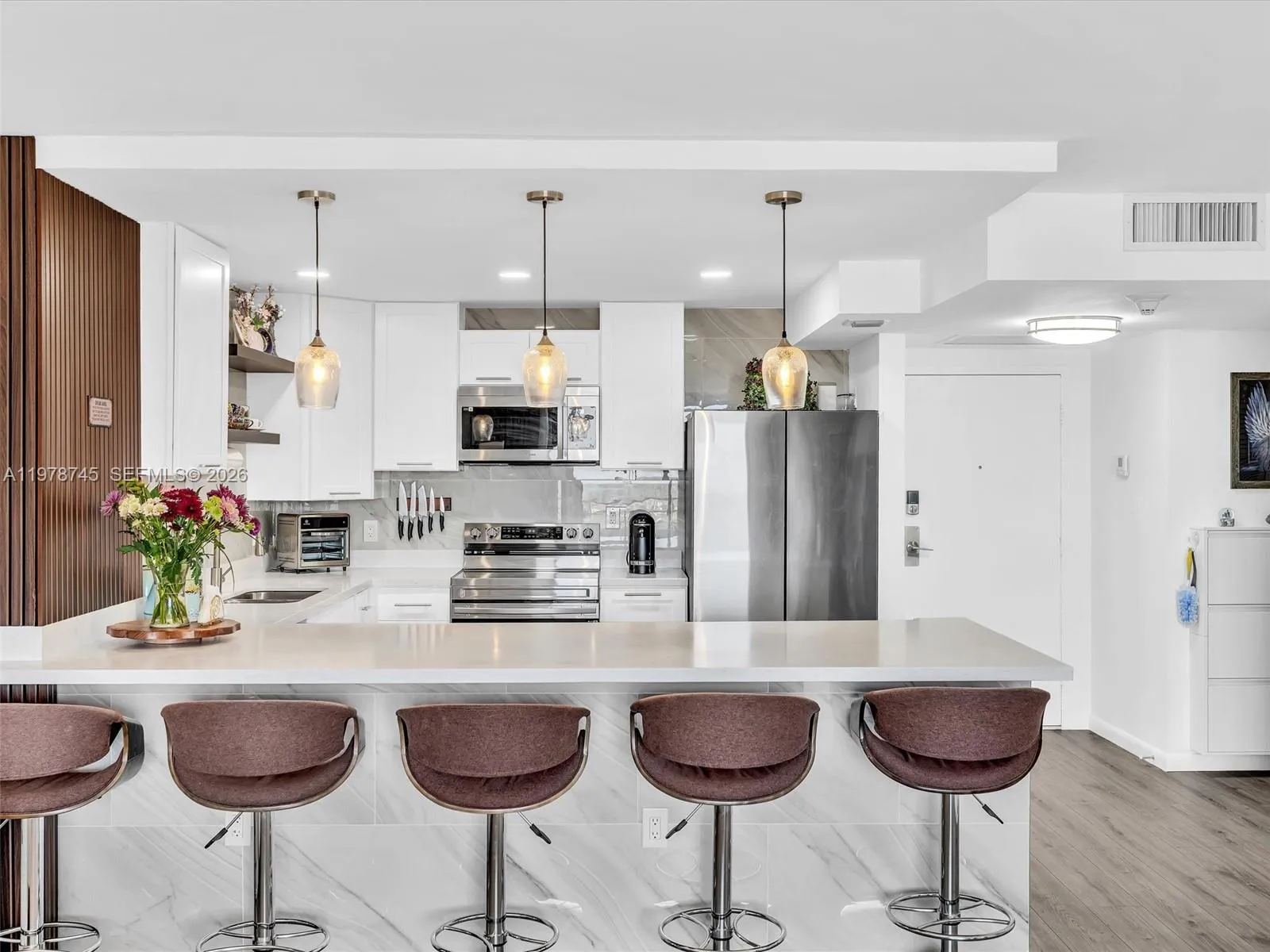 • Appliances: Dishwasher, Electric Range, Microwave, Refrigerator, Disposal, Trash Compactor