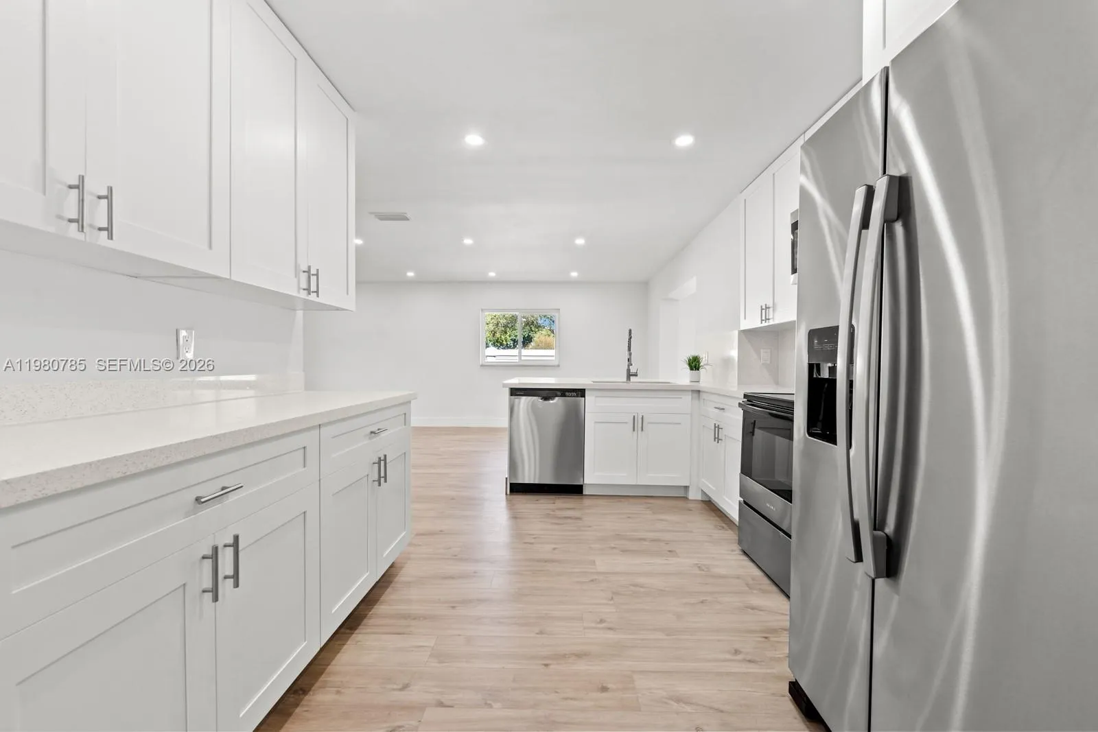 Completely renovated with approved plans and permits. 4 bedroom, 2 bathroom pool home, offering modern finishes and flexible living options. This beautifully updated property features brand new floors throughout, a modern smooth wall and ceiling finish, a brand-new roof, new A/C system, impact windows, and a brand-new tankless water heater for energy-efficient comfort. The open-concept kitchen showcases quartz countertops, brand new stainless steel appliances, a large breakfast island, and flows seamlessly into the spacious family room and Florida room, creating the perfect layout for entertaining and everyday living. The primary suite includes a private ensuite bathroom, while the home’s layout also offers potential for an efficiency or house-hack setup, creating an opportunity for additional income or multi-generational living. Step outside to enjoy the private pool area, perfect for relaxing or hosting guests. A rare opportunity to own a fully permitted, move-in ready home with modern upgrades and income potential.