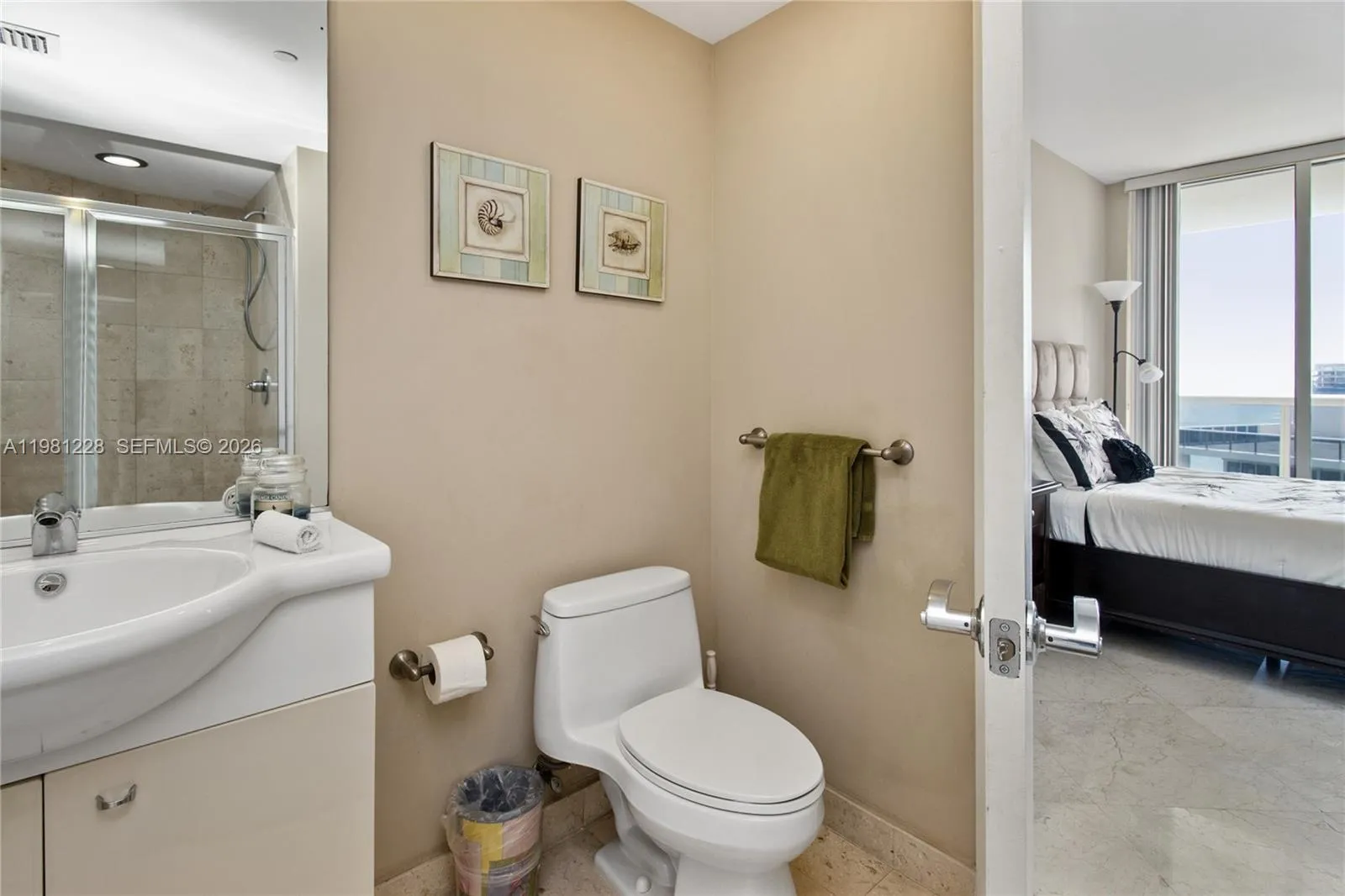 Enjoy stunning ocean and Intracoastal views from this beautifully appointed residence featuring a spacious primary suite with king bed and a second bedroom with queen bed. Elegant marble floors and bathrooms throughout, European-style cabinetry, granite countertops, and floor-to-ceiling impact windows with energy-efficient tinted glass. Full-service building with concierge, 24-hour security and valet. Resort-style amenities include three heated pools, oceanfront spa, poolside snack bar service, covered parking, room service, and an impressive 50,000 sq. ft. spa and fitness center overlooking the Atlantic Ocean.