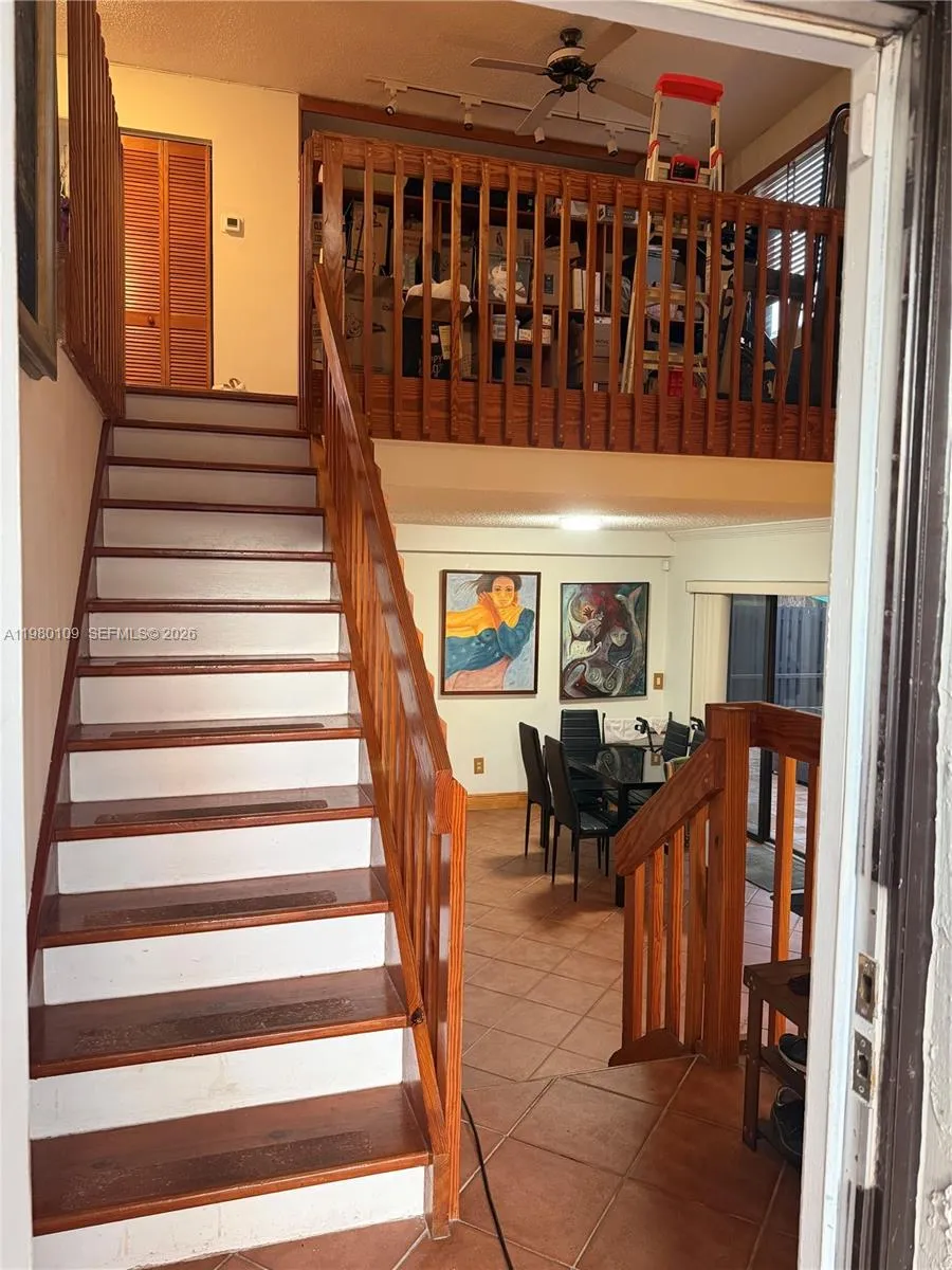 Opportunity! Largest model in the community. Spacious two-story townhouse featuring 3 bedrooms, 2.5 bathrooms, and a loft with a functional layout that includes one bedroom and a full bathroom on the first floor. Enjoy an eat-in kitchen, screened and fenced patio, and accordion hurricane shutters for added protection.rnrnResort-style community amenities include clubhouse, pool, spa, sauna, gym, basketball and tennis courts, and more.rnrnAssociation fee includes roof, exterior walls, landscaping, and pavement, offering excellent value and low-maintenance living.
