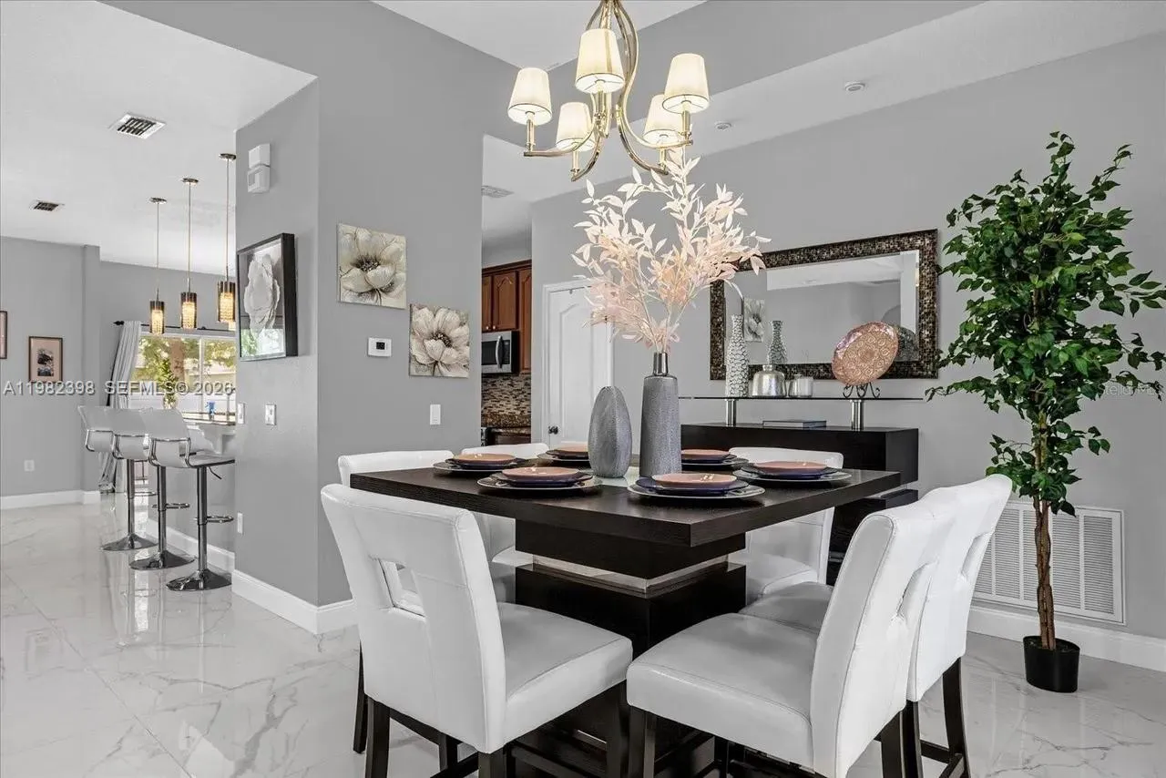 Phenomenal split floor plan 3-bedroom, 2-bath single-story home in the gated community of Springlake Village. This home features a functional open layout with the primary suite on the first floor, ceramic tile flooring throughout the main living areas, and a spacious living and dining combination ideal for everyday living and entertaining. The kitchen offers ample cabinetry and workspace and opens to the main living area. The property sits on a 6,400+ sq ft lot with vinyl fencing, sliding glass doors leading to the backyard, and a converted two-car garage. Additional highlights include new large capacity A/C, walk-in closets, electric car charger, built-in storage features, flex additional 1/1 guest suite, and a dedicated laundry area. Springlake Village residents enjoy a guard-gated entrance, community pool, fitness center, playground, and walking paths, with convenient access to 417, Lake Nona, Orlando International Airport, and major shopping and dining. Call for more information.