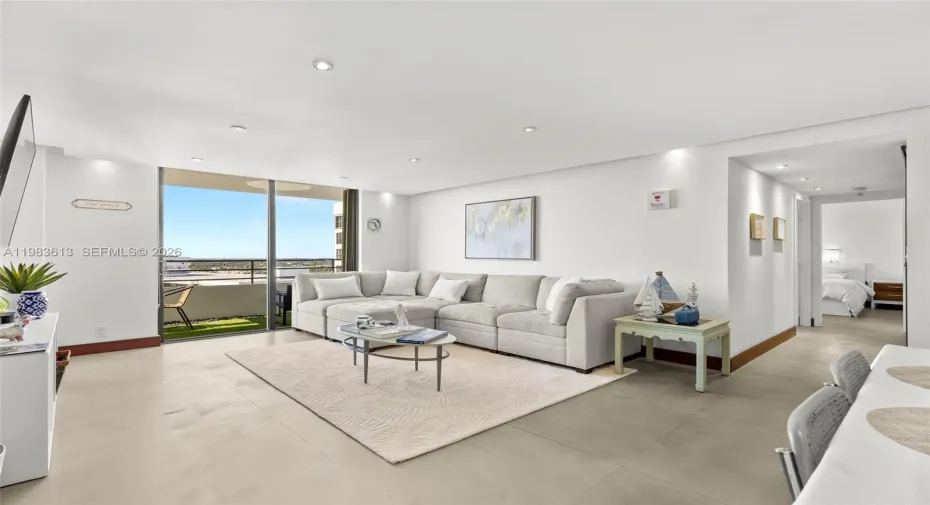 Located in the desirable Three Islands community, just a 15-minute walk to the beach and local restaurants. This 2-bedroom, 2-bath layout, features one of the best split-floorplan lines in the building. The unit has been tastefully remodeled throughout, showcasing a modern renovated kitchen with granite countertops, stainless steel appliances, custom cabinetry, and a stylish blue tile backsplash. The oversized living and dining areas flow seamlessly toward large sliding doors that open to an expansive balcony with stunning city and water views. The community offers exceptional amenities including 4 tennis courts, a fitness center, 2 heated pools, sauna, BBQ area, and a marina with dock space available upon association request. Beautifully landscaped grounds and a resort-style atmosphere make this the perfect place to call home.