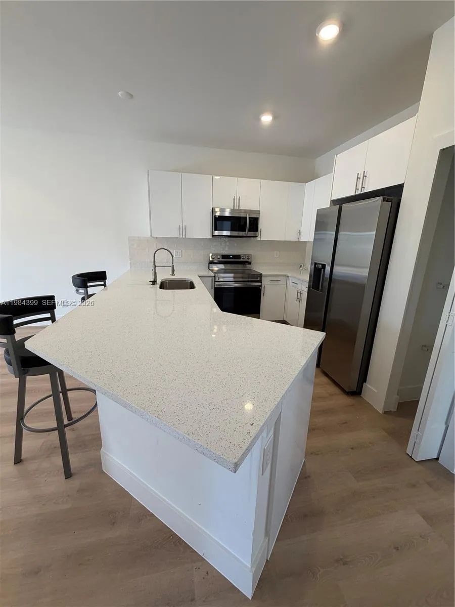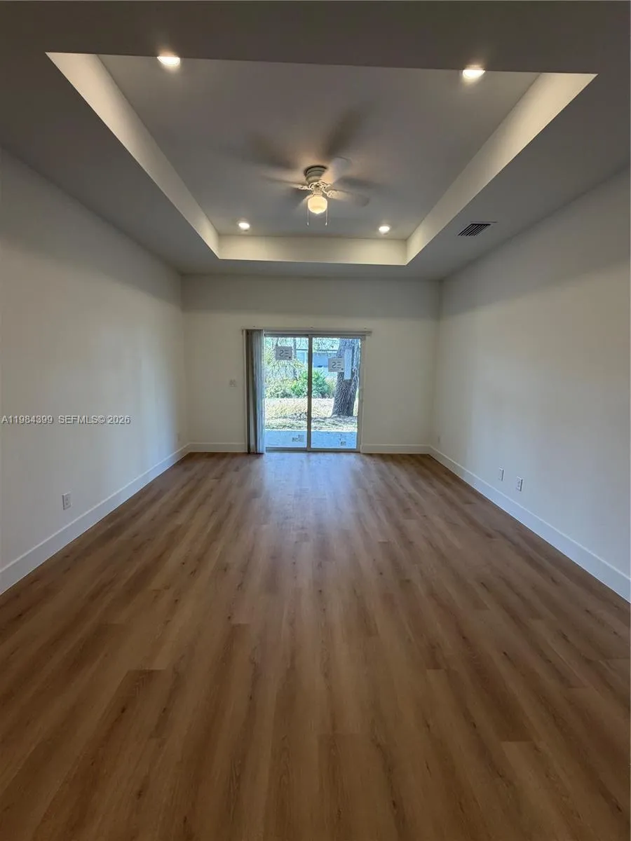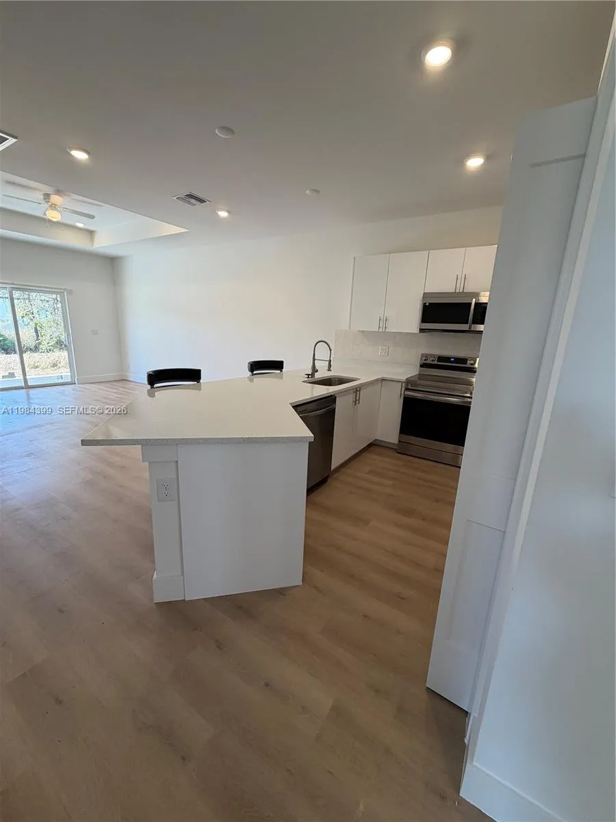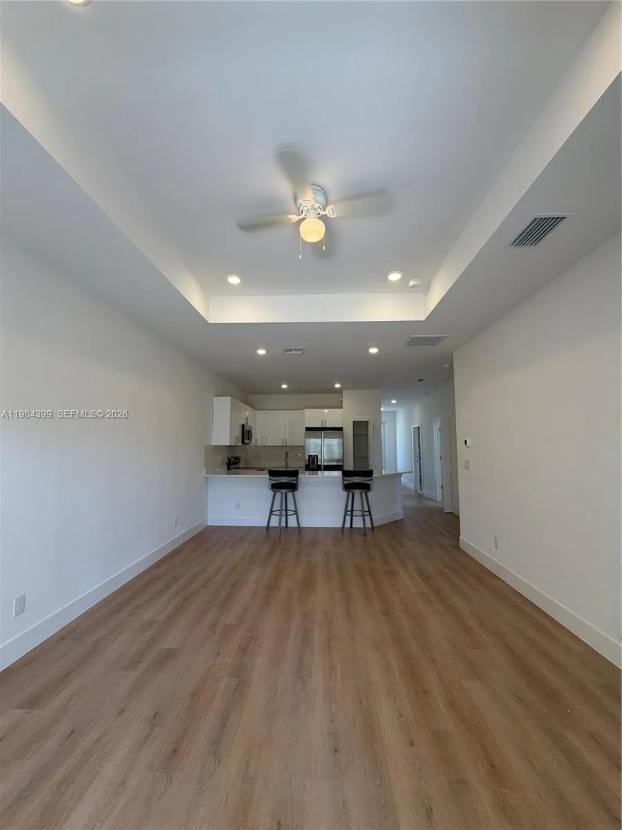 Be the first to live in this stunning brand new 3 bedroom, 2 bath fenced backyard with a divider between both units, providing each residence with its own private outdoor space. Covered lanai, a 1 car garage with additional parking space in the long driveway that can fit two additional cars, designed with modern finishes and comfortable living in mind. This never lived in residence features a bright open concept layout with stylish luxury vinyl flooring, recessed lighting, and large windows that fill the space with natural light.rnrnThe beautiful kitchen is the heart of the home, showcasing sleek quartz countertops, modern cabinetry, stainless steel appliances, and a spacious breakfast bar perfect for casual dining or entertaining guests.rnrnThe spacious bedrooms offer ample closet space, while the bathrooms feature elegant vanities and beautifully tiled walk in showers, creating a clean and contemporary feel throughout the home.rnrnEnjoy the convenience of central A/C, in unit washer and dryer, and a covered lanai with ceiling fan and lighting, ideal for relaxing outdoors. The property also offers generous backyard space for added comfort and privacy.rnrnA perfect combination of modern design, comfort, and brand new construction. Move in ready and waiting for its very first residents.