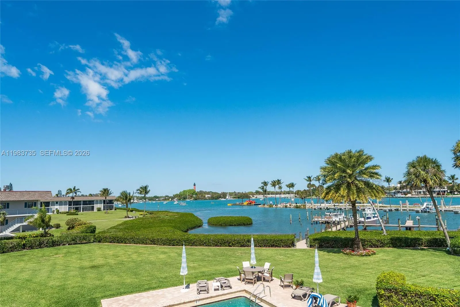 Extremely desirable (and Hard to find) 2Br/2Ba in an Intimate 6-unit condo building offering the finest breathtaking view of the Jupiter Inlet and Jupiter Lighthouse in town! Interior features include: Volume ceilings, Open Kitchen, and wide balcony. Immaculate! Additional features include: Lovely pool, boat slip, kayak storage, and a private oversized garage. This unit is truly a pleasure to show and sell. Ideally located.
