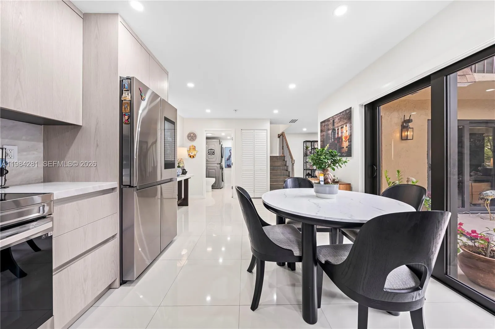 Welcome to next-level living in the gated enclave of Lago Grande. This Smart Home has been flawlessly reimagined with no expense spared. The 1,462 SF open-concept floor plan shines with polished large-format ceramic tile and a chef’s kitchen featuring imported cabinetry, quartz countertops, and smart energy-efficient appliances. The primary full bathroom offers a spa-inspired escape with a floating vanity and frameless rain shower, complemented by a designer half-bath for guests. The primary suite serves as a true sanctuary, complete with a built-in closet and impact sliders leading to a private balcony. Entertain in style on your expansive patio under a custom pergola and string lighting. Peace of mind is paramount with full impact windows/doors PLUS hurricane shutters plus Smart Home automation giving you control from anywhere. Community amenities: pool, basketball, and 24/7 guard gate. No Rental Restrictions – lease right away. All assessments PAID. This turnkey gem is move-in ready!