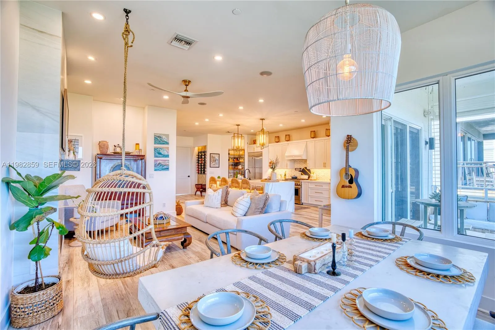 Experience modern coastal luxury in this stunning 2022 custom-built oceanfront retreat located in the exclusive gated community of Watersong on South Hutchinson Island. This 4-bedroom, 3-bath residence with a den/office features a thoughtfully designed floor plan centered around a chef’s kitchen with premium cabinetry, professional-grade appliances, gas range, and an oversized island perfect for entertaining. Soaring ceilings, durable luxury vinyl flooring, and expansive hurricane-impact windows fill the home with natural light while showcasing breathtaking ocean views.rnrnThe primary suite is a private coastal sanctuary featuring its own balcony overlooking the Atlantic, two oversized walk-in closets, and a spa-inspired bath with a soaking tub, expansive wet-room shower, and dual vanities. Wake up to spectacular sunrises over the ocean and unwind each evening with colorful sunsets over the Intracoastal.rnrnOutdoor living is designed for the ultimate island lifestyle, complete with an outdoor shower, hot tub, gas fireplace, workout area, and pass-through garage doors ideal for storing a midsize center console boat or multiple jet skis. An elevator provides easy access to all levels. The private, quiet community offers both security and serenity, along with a resort-style pool perfect for swimming laps or entertaining guests. Schedule your private tour today and start living the South Hutchinson Island lifestyle.