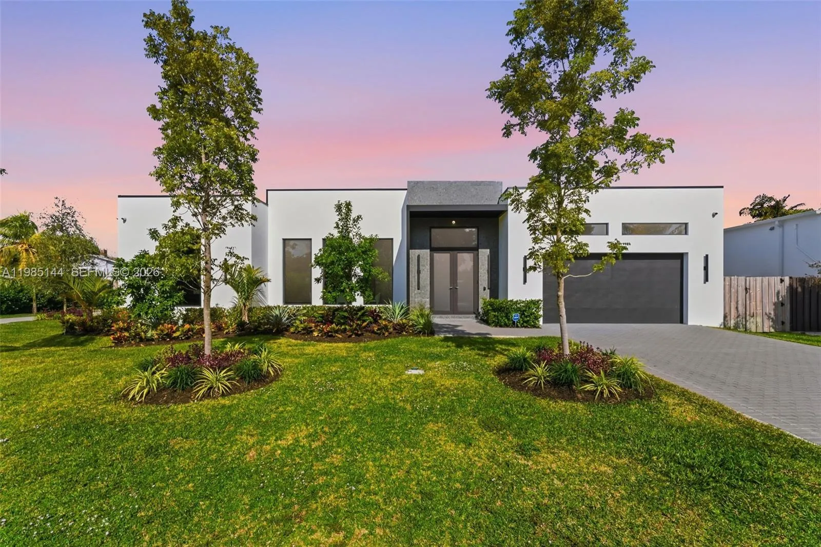 A newly completed 2025 residence by Eitan Construction, this 4-bedroom, 3.5-bath home brings a modern, loft-like sensibility to Wilton Manors. Set on a corner lot, the home offers a sense of openness, privacy, and strong architectural presence. The interiors are defined by scale and natural light, with 11-foot ceilings and oversized ES impact windows throughout. A warm, modern palette of soft grays, deep tones, wood, and bronze accents creates a calm, cohesive living environment. The open living and dining areas center around a thoughtfully designed kitchen, featuring a 13-foot Caesarstone island, custom European cabinetry, a full Thermador appliance suite, and a concealed walk-in pantry. Clean lines and integrated finishes give the space a seamless, uncluttered feel.rnLarge-format 48×48 porcelain tile floors run throughout, reinforcing the home’s open, continuous layout. Sliding glass doors connect the interior to a covered lanai with a motorized SPF screen, extending the living space outward.rnrnAdditional details include Restoration Hardware fixtures, custom closets, and motorized blinds by The Shade Company. Outside, a saltwater pool and spa sit within fully fenced, landscaped, and irrigated grounds, offering a private and easy outdoor setting. Built with long-term durability in mind, the home includes cement slab walls, industrial-grade roof construction, dual-zone Nest climate control, Cooper & Hunter HVAC, Rheem water heating, and a 22×20 two-car garage.