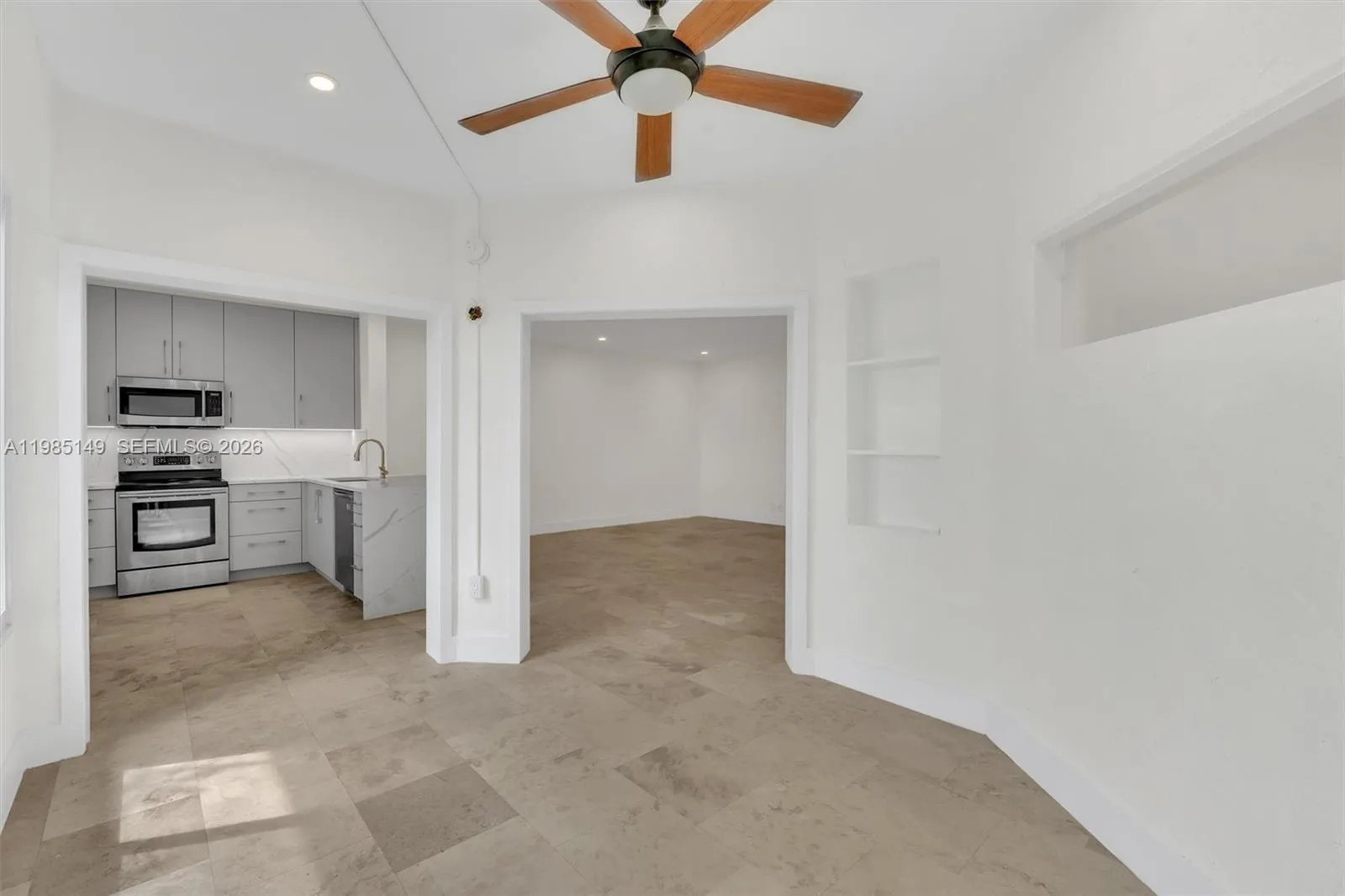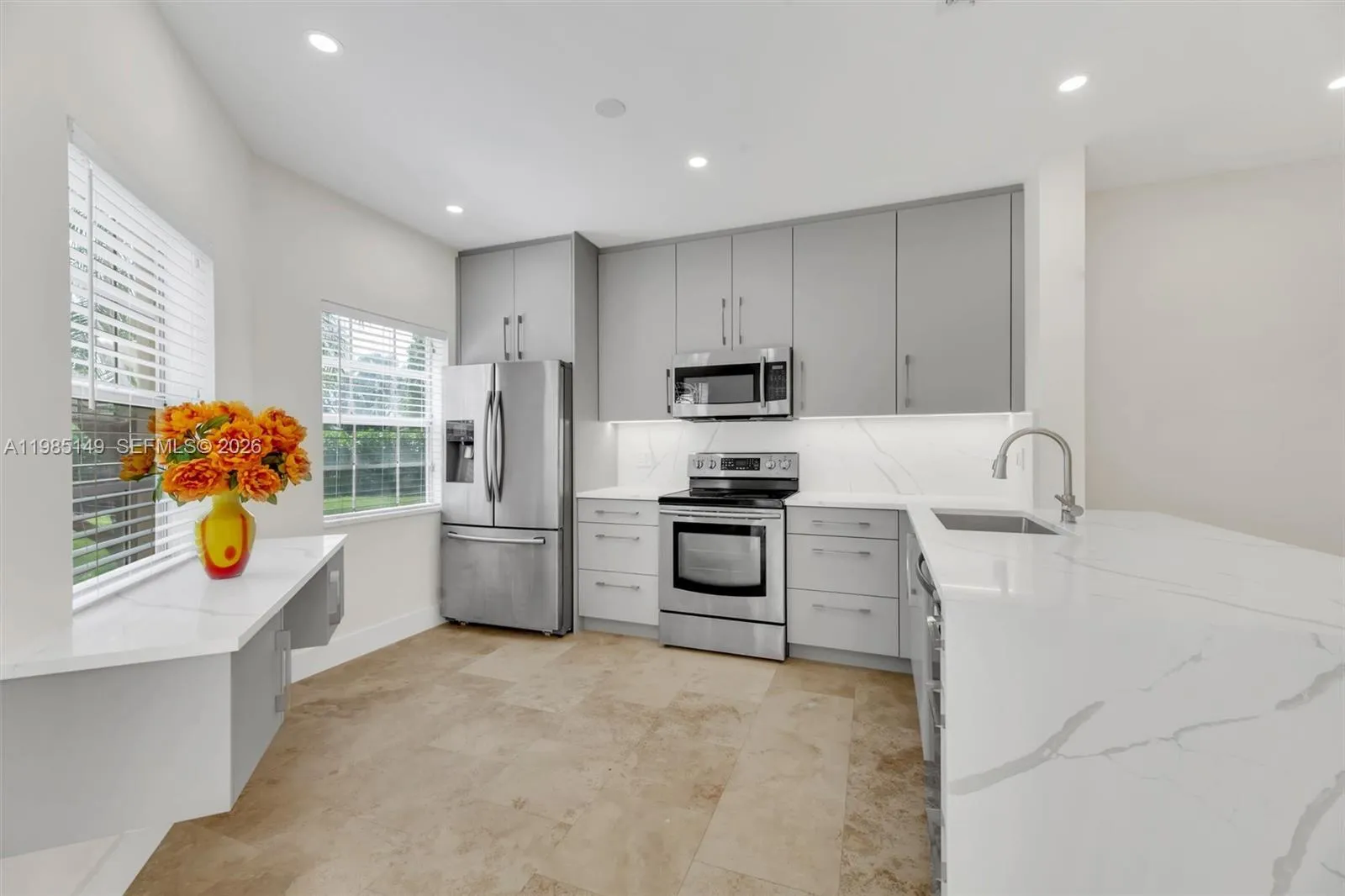TRULY ONE OF A KIND—COMPLETELY UPDATED, BRIGHT, AND SPACIOUS! This beautifully remodeled 2-bedroom, 2-bath condo in Plum at Boca Pointe features a modern open floor plan and a fully enclosed patio with impact windows and doors, perfect for year-round enjoyment.rnInside, you’ll find elegant travertine and laminate flooring, a brand-new kitchen with quartz countertops and custom cabinetry, smooth ceilings with recessed lighting, and upgraded doors, trim, and custom closets throughout. Both bathrooms have been tastefully renovated with quartz finishes, and the A/C unit is just one year old. Under air 1,112 sq ft. Enjoy the convenience of being within walking distance to the community pool. Condo dues cover master insurance, roof maintenance, landscaping, water, alarm, and cable. Investor-friendly with flexible rental options—up to 4 times per year (30-day minimum).
