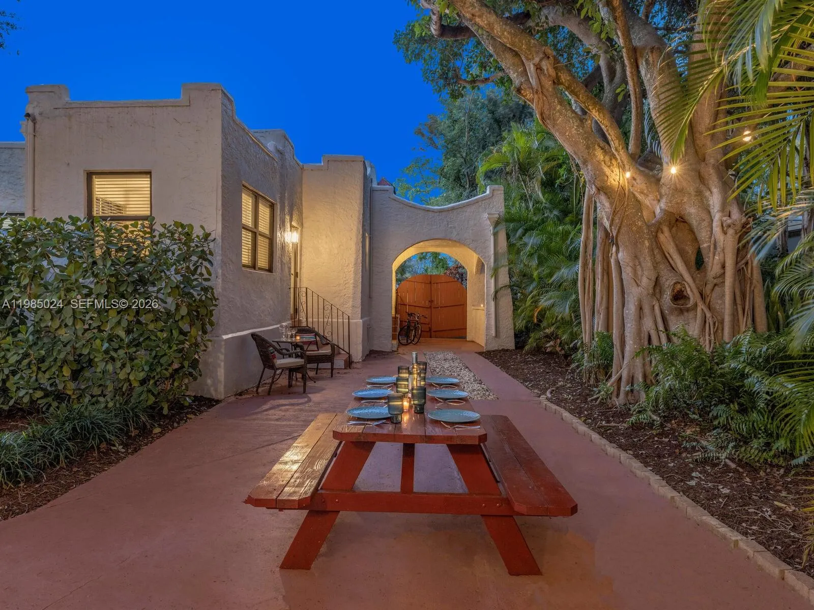 One property. Three distinct living spaces—a main house plus a two-story guest house with two separate guest units! Welcome to Villa Serenata—a rare 1925 Mission-style compound in Miami Shores offering a 3BD/2BA main residence and a detached two-story casita with TWO fully independent units—ideal for multigenerational living, guests, home office, fitness, or more. Much like a serenade drifting through the evening air, this romantic Mediterranean-inspired retreat unfolds with graceful rhythm, warmth, and timeless architectural detail. The 1,463 SF main home features bamboo wood floors, a sun-filled Florida room perfect for a lounge or office, and a living room with original fireplace and elegant columned archway leading to the formal dining area. The updated kitchen includes marble countertops, a breakfast bar, and a bright window-wrapped breakfast nook. Outdoors, enjoy a lush oak-canopied entertaining oasis with an entertainment esplanade, plenty of green space, and room for a pool. The 800 SF two-story casita offers two separate legal “apartments” with updated baths and kitchenettes plus storage. All in a fantastic non-flood zone location, just blocks to Downtown Miami Shores.