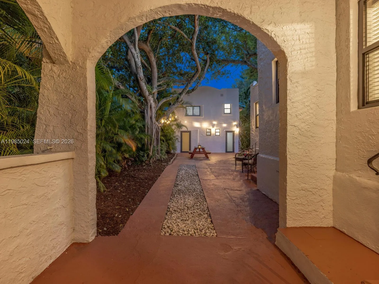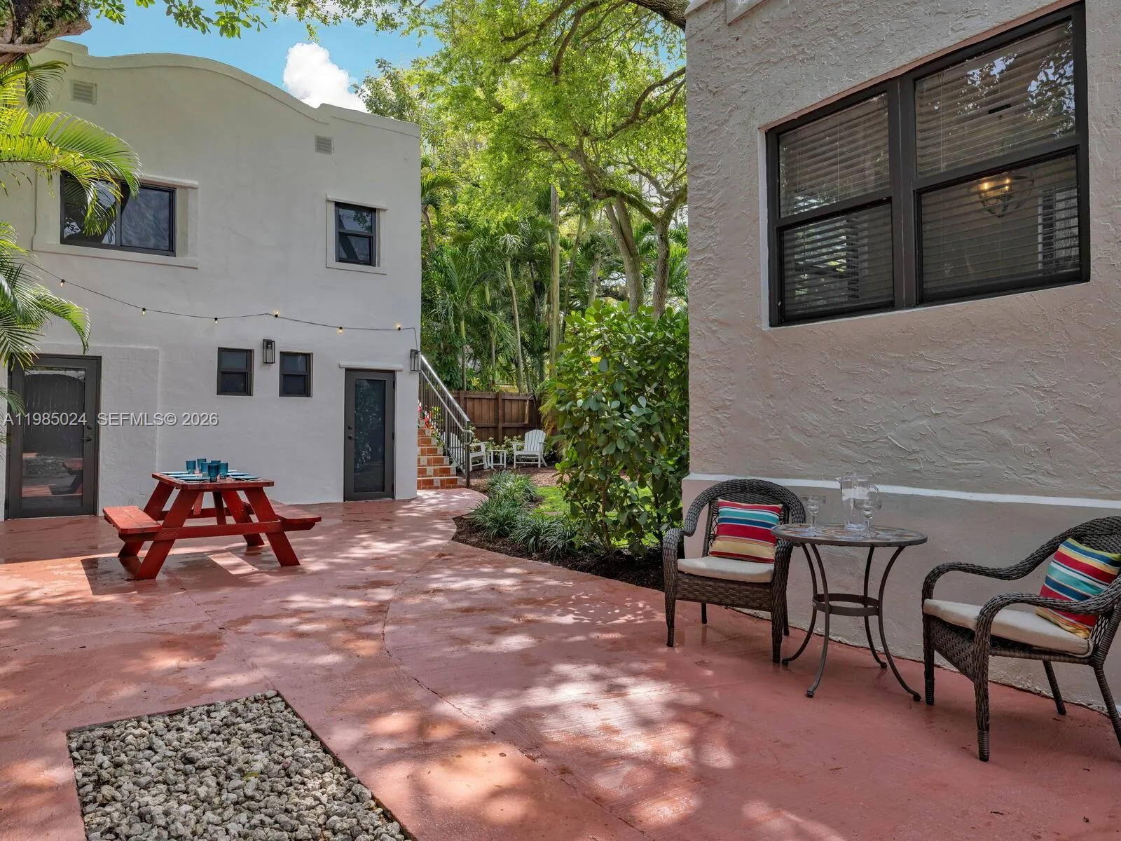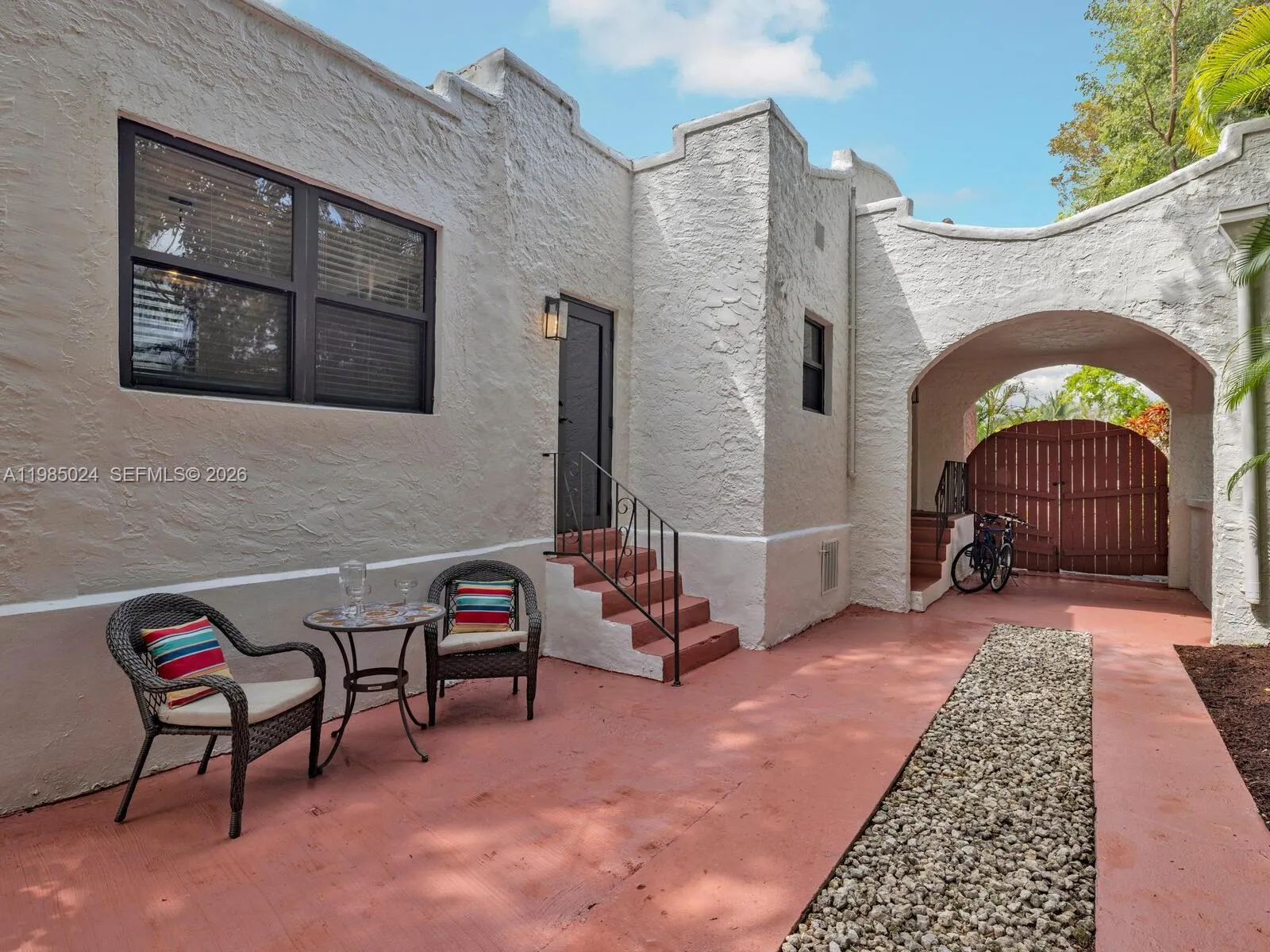 One property. Three distinct living spaces—a main house plus a two-story guest house with two separate guest units! Welcome to Villa Serenata—a rare 1925 Mission-style compound in Miami Shores offering a 3BD/2BA main residence and a detached two-story casita with TWO fully independent units—ideal for multigenerational living, guests, home office, fitness, or more. Much like a serenade drifting through the evening air, this romantic Mediterranean-inspired retreat unfolds with graceful rhythm, warmth, and timeless architectural detail. The 1,463 SF main home features bamboo wood floors, a sun-filled Florida room perfect for a lounge or office, and a living room with original fireplace and elegant columned archway leading to the formal dining area. The updated kitchen includes marble countertops, a breakfast bar, and a bright window-wrapped breakfast nook. Outdoors, enjoy a lush oak-canopied entertaining oasis with an entertainment esplanade, plenty of green space, and room for a pool. The 800 SF two-story casita offers two separate legal “apartments” with updated baths and kitchenettes plus storage. All in a fantastic non-flood zone location, just blocks to Downtown Miami Shores.