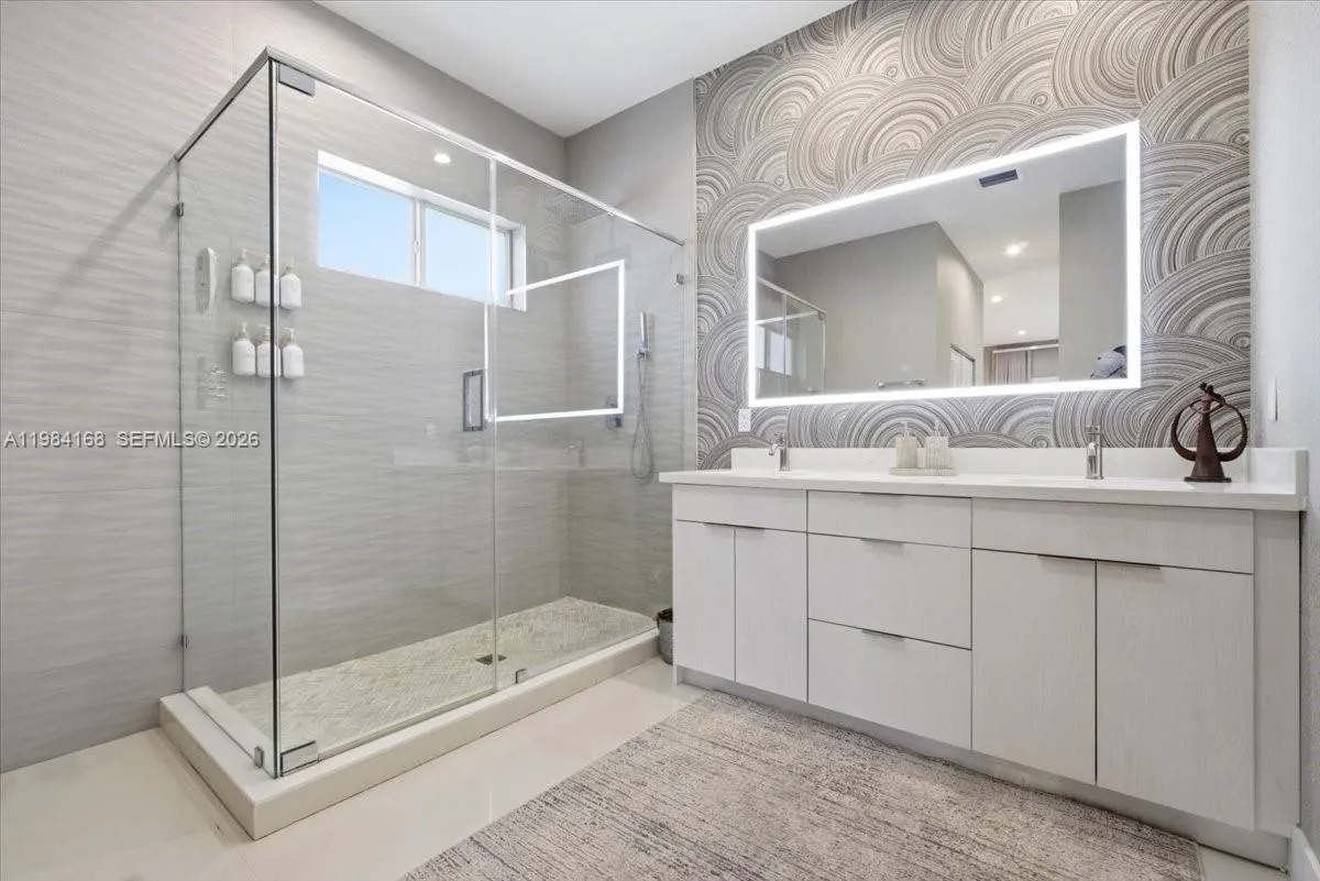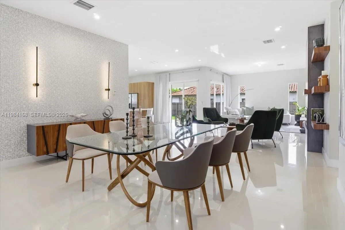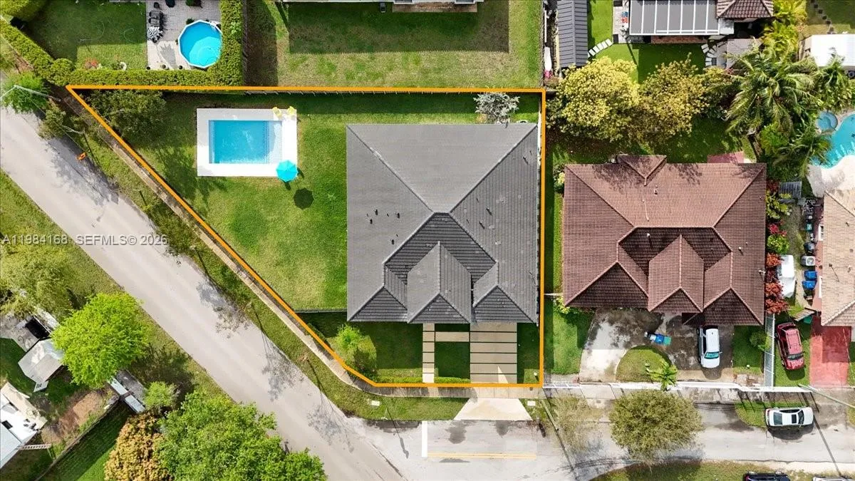 Experience modern luxury in this stunning one-story SMART home, featuring 4 bedrooms and 4 full bathrooms, with 2,700 SqFt of living space and 3,477 total SqFt, perfectly positioned on a 10,884 SqFt corner lot. This residence was thoughtfully designed with open-concept living, highlighted by 10-foot ceilings and an abundance of natural light. High-end finishes are showcased throughout, including impact windows, frameless glass-enclosed showers, and premium quartz countertops in both the kitchen and bathrooms. Designer rectified porcelain tile flooring. The outdoor space is equally impressive, featuring a private pool and an expansive backyard with a covered terrace—ideal for entertaining, weekend BBQs, or simply enjoying South Florida living year-round. A two-car garage and paved driveway add convenience and curb appeal, while the location offers easy access to shopping, dining, and major roadways—just 1 mile from Florida’s Turnpike and only 3 miles from Black Point Park and Marina. Best of all, enjoy the freedom of NO HOA or CDD fees.